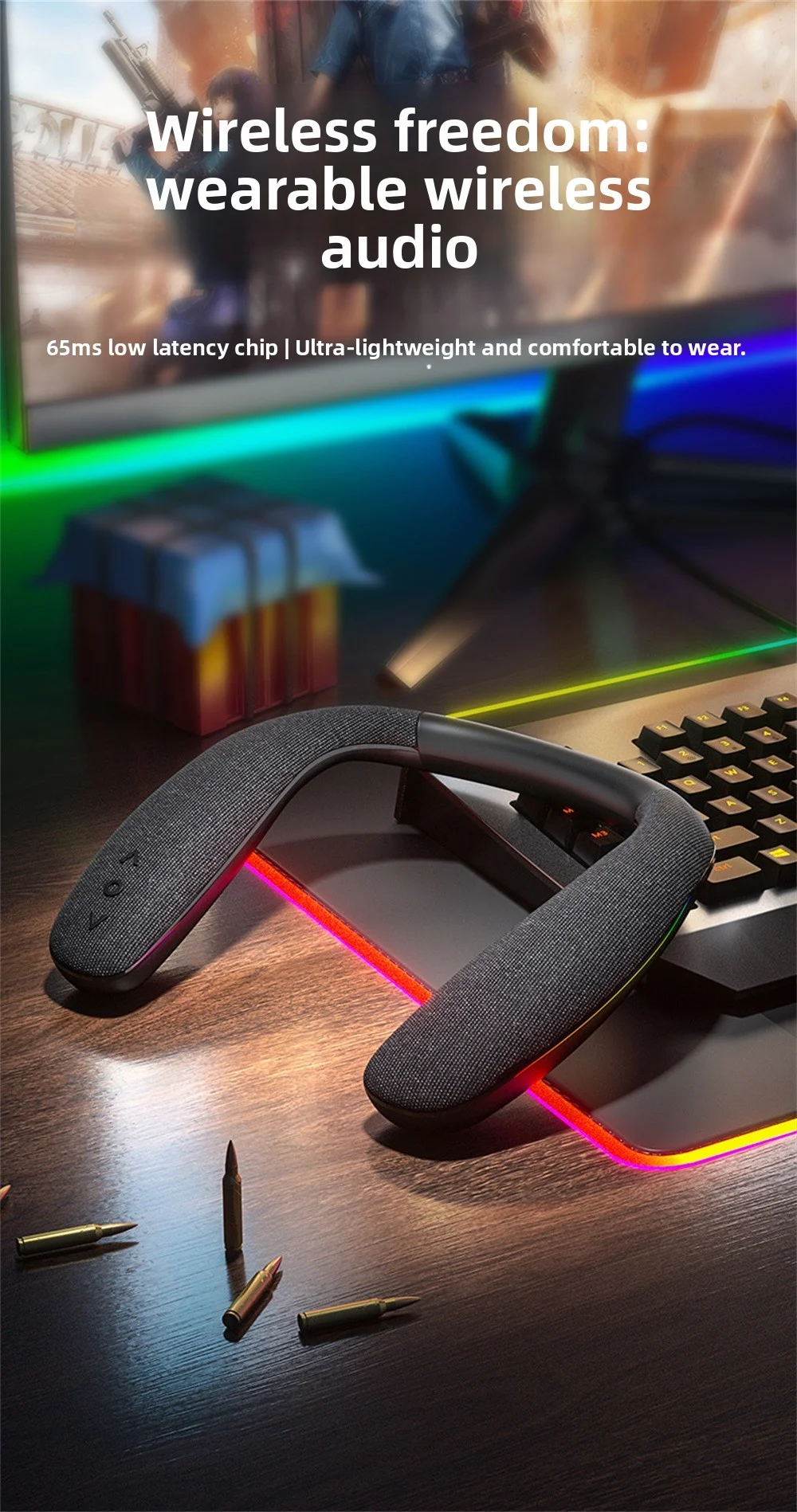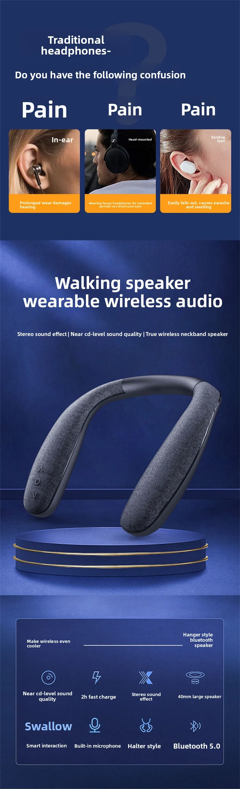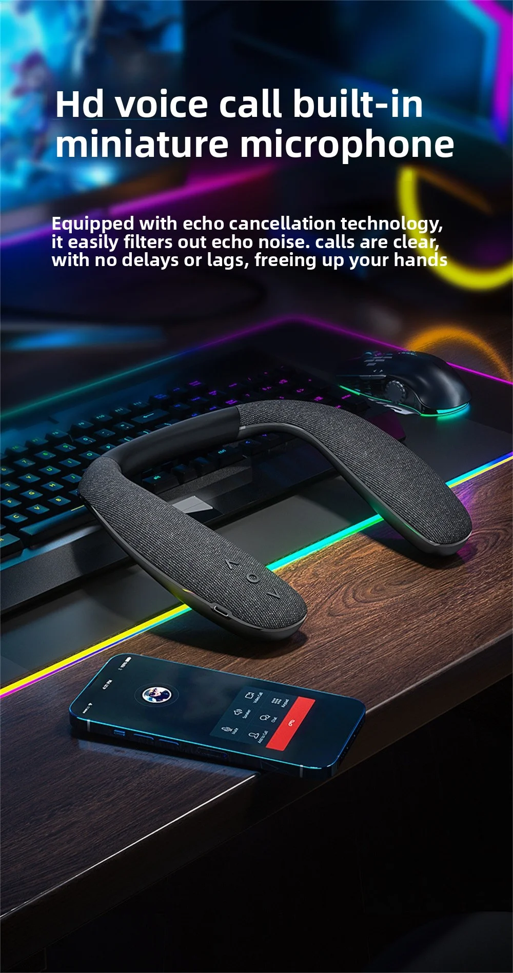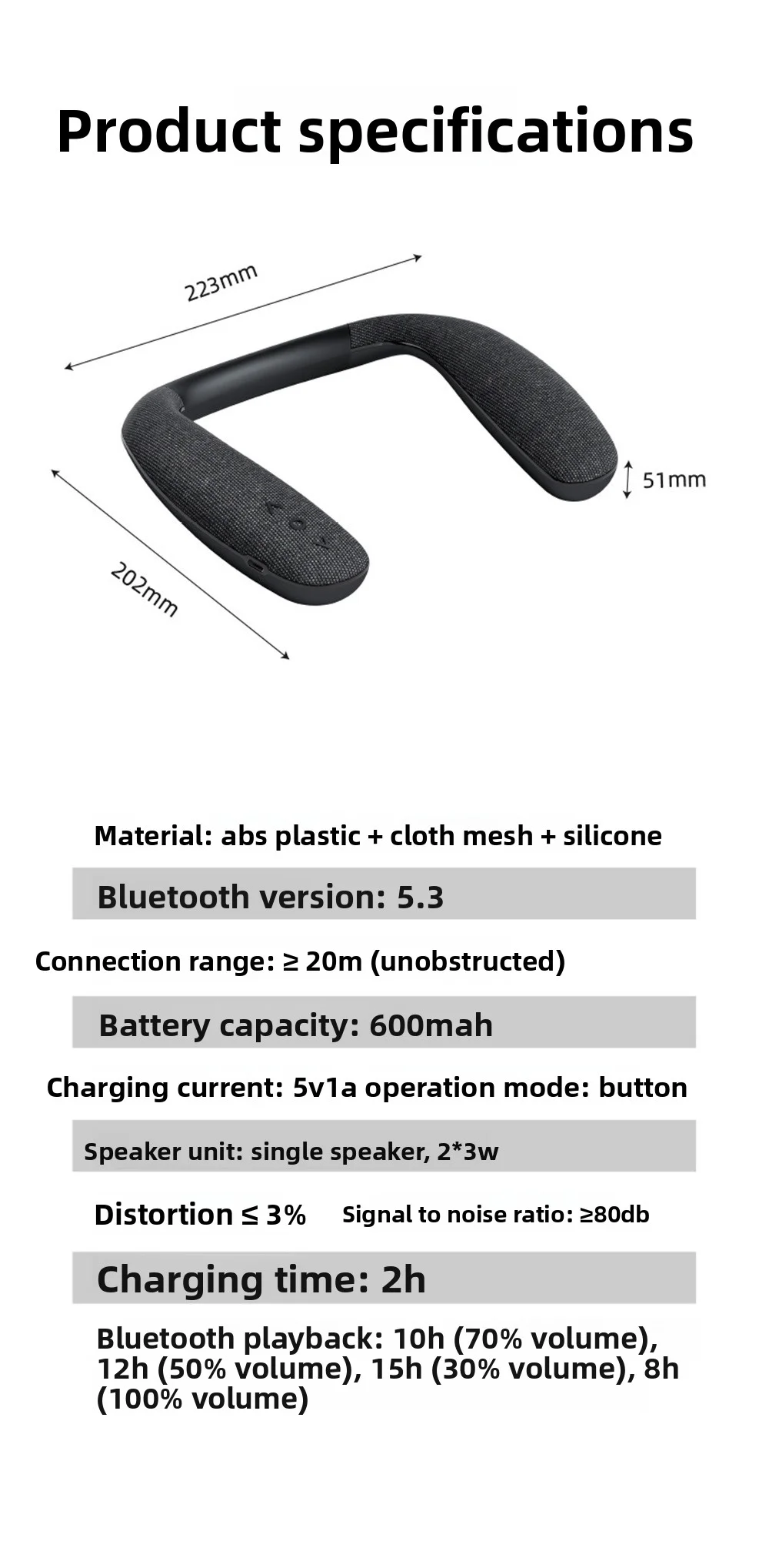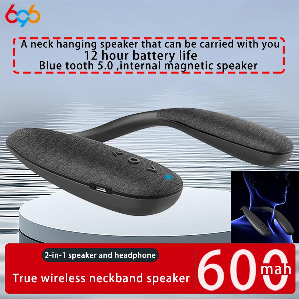 Comprar Altavoz de diente azul inalámbrico con cuello colgante 696, altavoz de cuello estéreo con Subwoofer portátil con micrófono para juegos y viajes