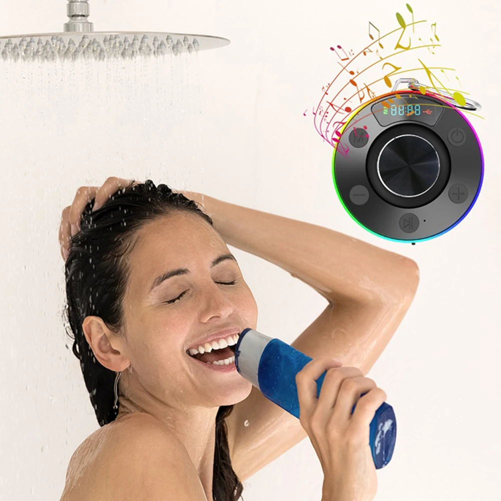 Característica:1.Sonido HD inmersivo:El altavoz de ducha ofrece 360° Sonido HD envolvente con graves ricos, medios claros y agudos suaves, incluso en medio de ruido de la ducha.Su micrófono integrado te permite atender llamadas sin correr el riesgo de que tu smartphone se moje.