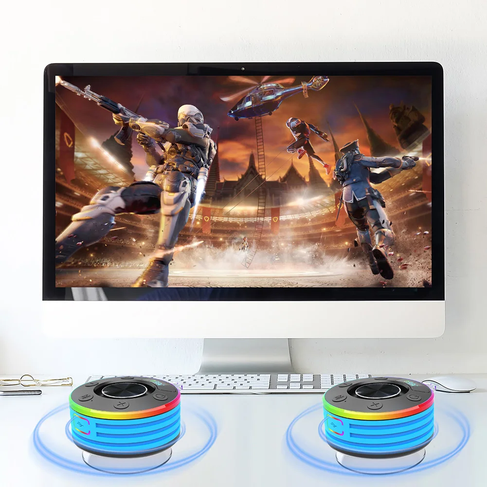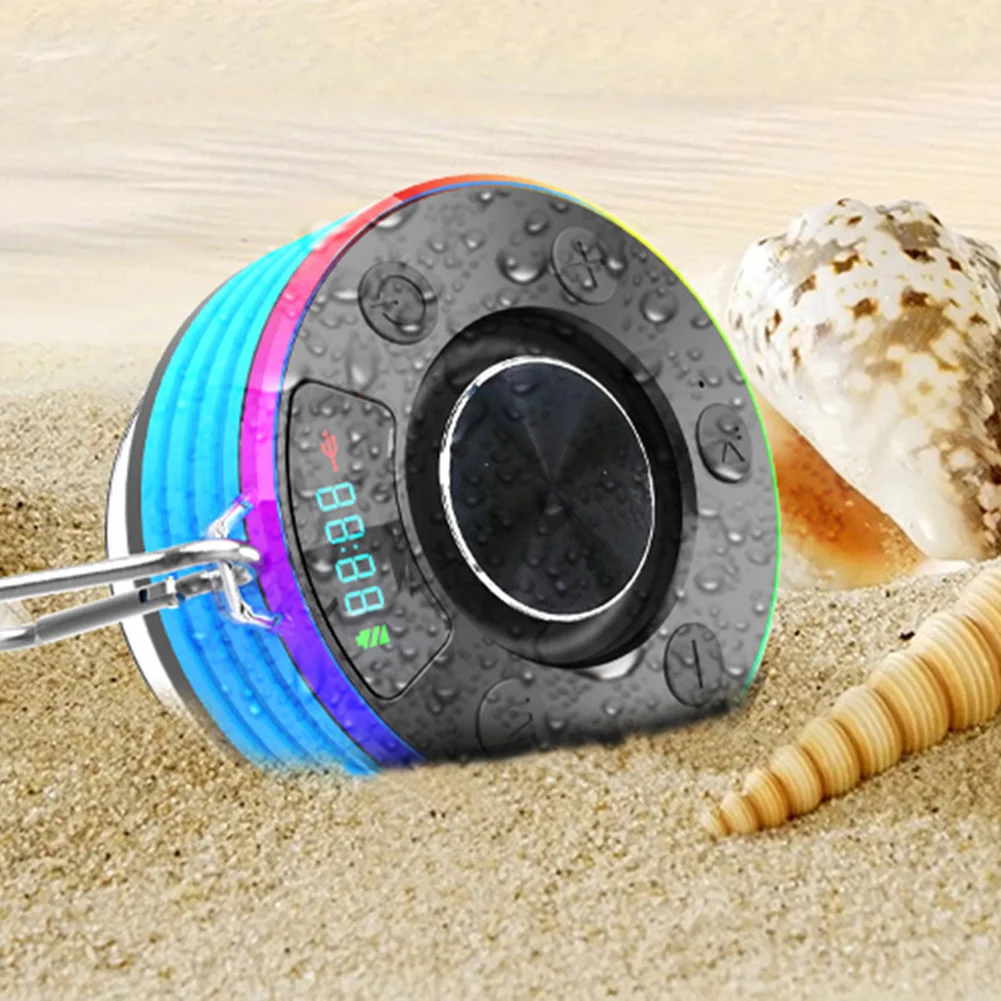 3.IPX7 resistente al agua con ventosa:El altavoz inalámbrico portátil cuenta con una clasificación de impermeabilidad IPX7, perfecto para uso junto a la piscina, la playa o el baño.Su resistente ventosa se fija de forma segura a superficies lisas como paredes de ducha y encimeras de vidrio.