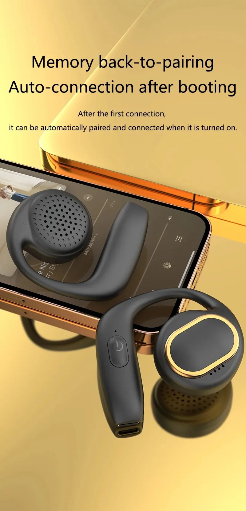Altavoz de gran tamaño G19, cascos inalámbricos por Bluetooth, conducción de aire de doble oreja, batería de larga duración