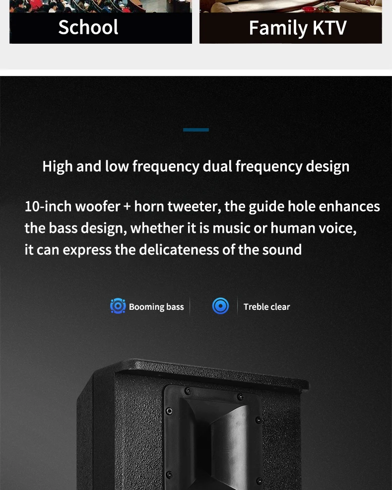 Tipo de sistema: 10 pulgadas, 2 frecuencias, reflectante de baja frecuencia