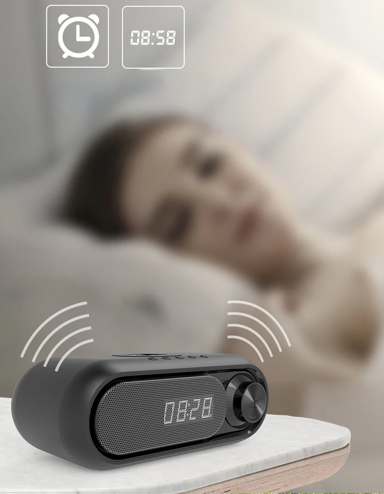 Comprar Altavoz inalámbrico de 10W, barra de sonido con cargador de teléfono, despertador inalámbrico, Audio, Bluetooth, Subwoofer portátil para ordenador portátil