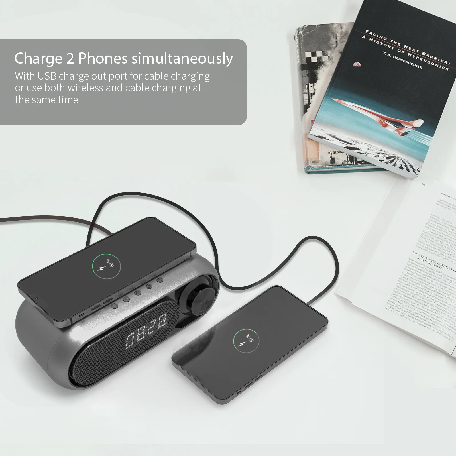 Comprar Altavoz inalámbrico de 10W, barra de sonido con cargador de teléfono, despertador inalámbrico, Audio, Bluetooth, Subwoofer portátil para ordenador portátil