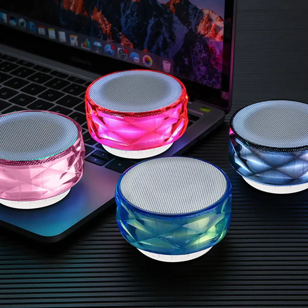 Comprar Altavoz inalámbrico con Bluetooth-compatible, minialtavoz de cristal, diamante, LED, USB, Subwoofer, Mp3, Audio estéreo, reproductor de música, luz colorida