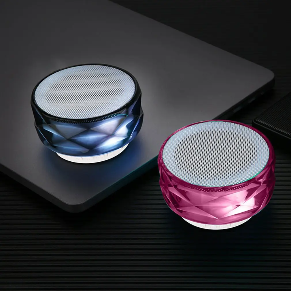 Comprar Altavoz inalámbrico con Bluetooth-compatible, minialtavoz de cristal, diamante, LED, USB, Subwoofer, Mp3, Audio estéreo, reproductor de música, luz colorida