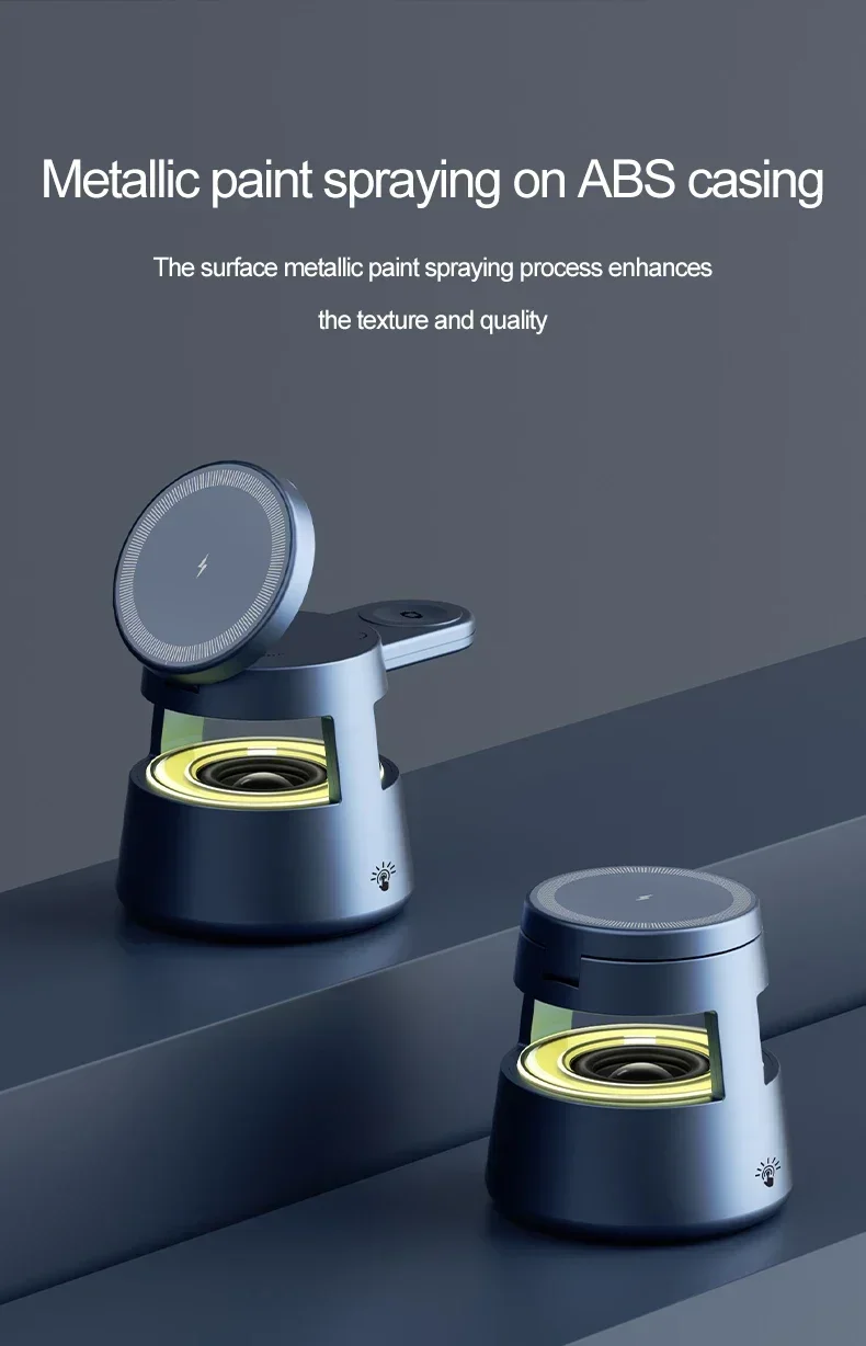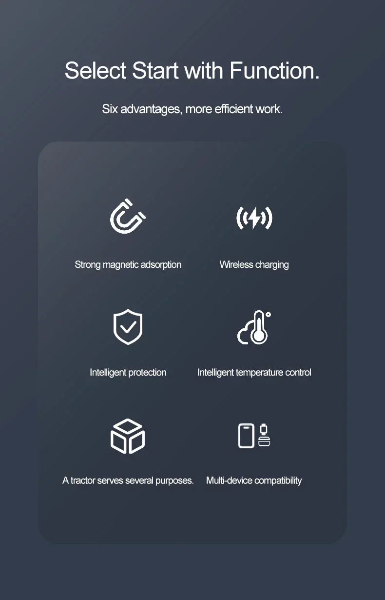 3.Carga inalámbrica tres en uno: admite tres tipos de estándares de carga inalámbrica, como el estándar Qi, compatible con una variedad de dispositivos inteligentes, para satisfacer las necesidades de carga de diferentes dispositivos.