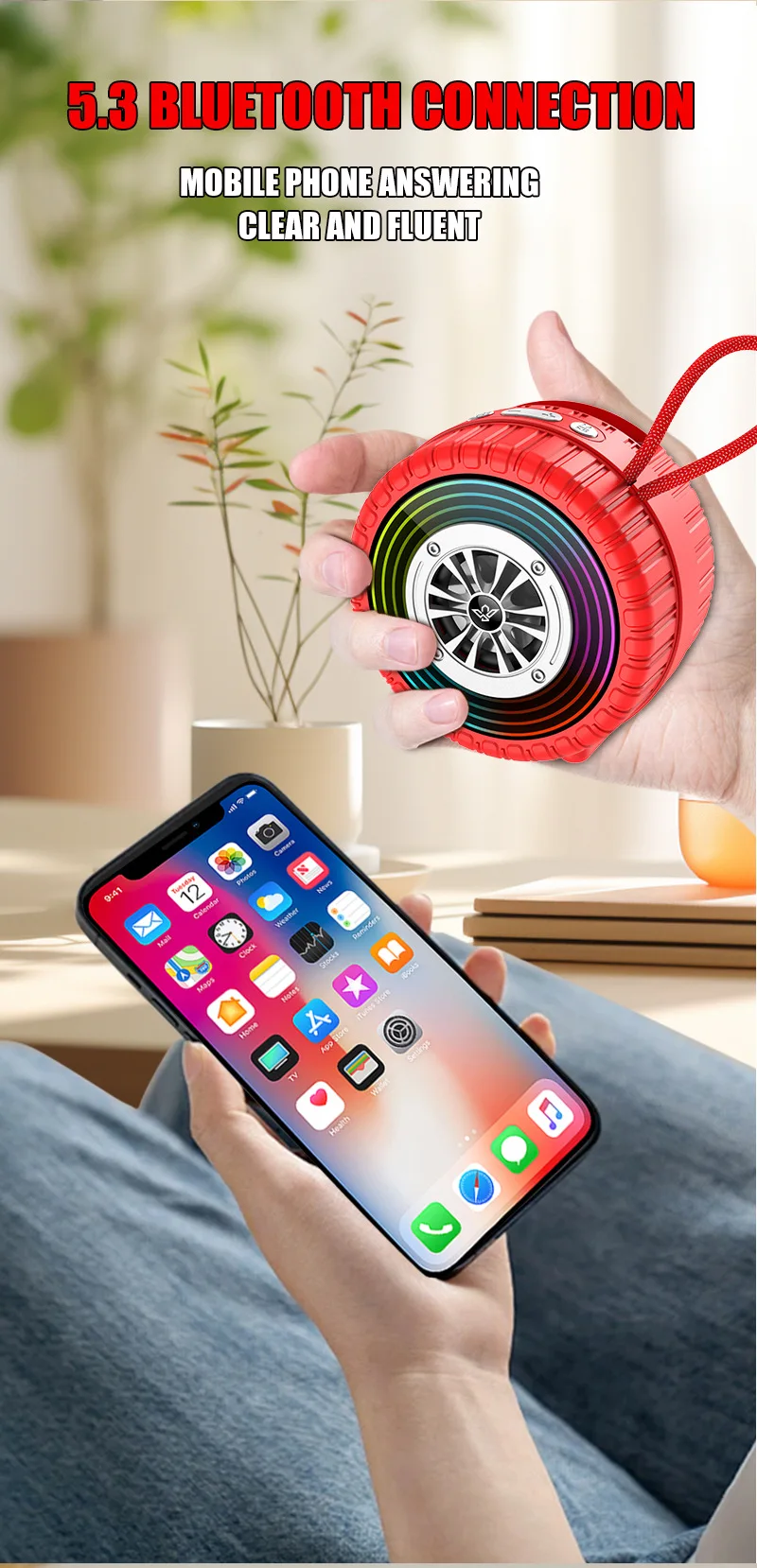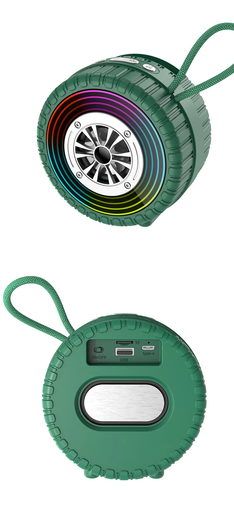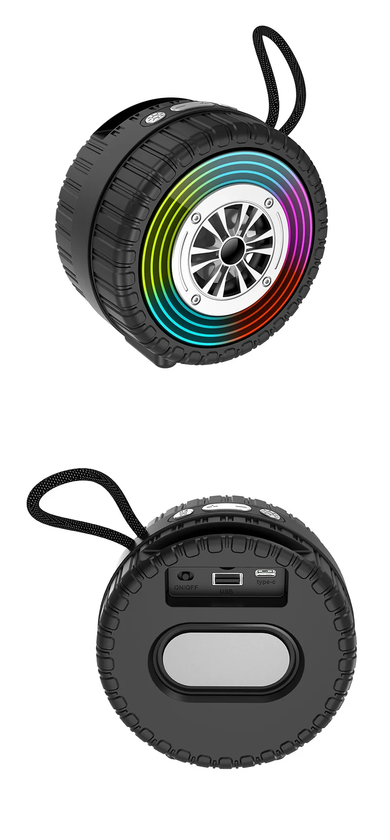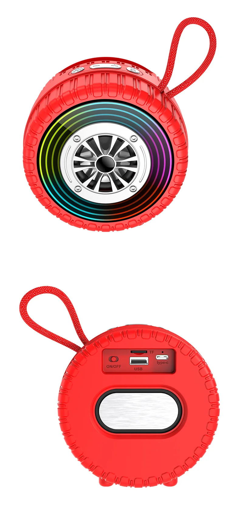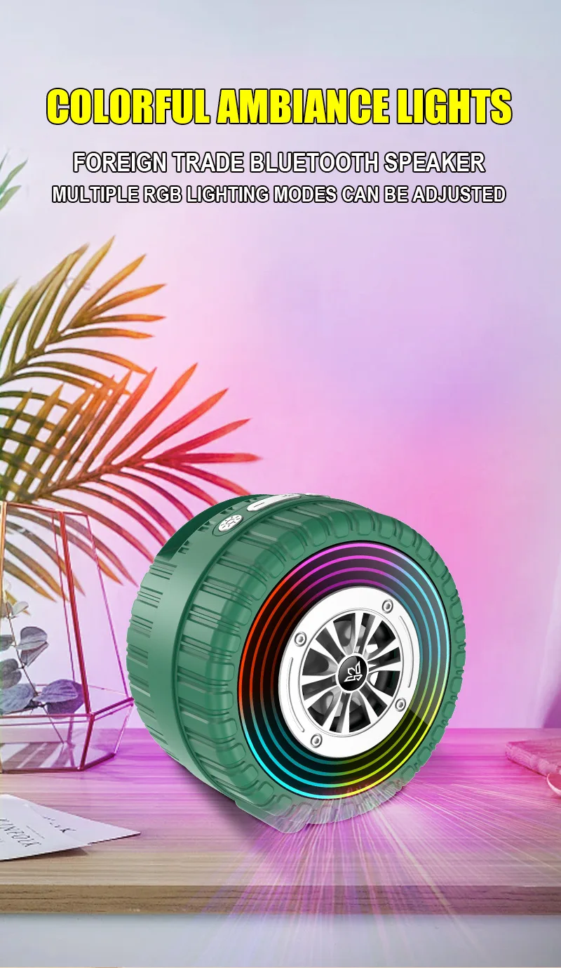 Altavoz inalámbrico creativo con forma de rueda de coche con luz Led, altavoz de música portátil con Bluetooth para exteriores, decoración para coche, regalos divertidos