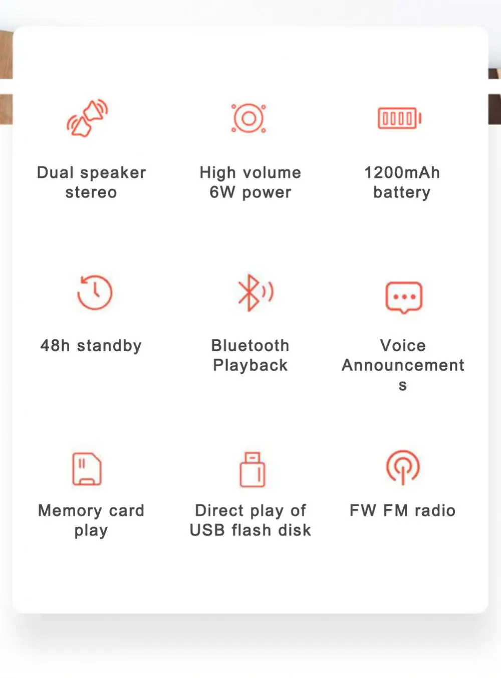 5. Soporte, tarjeta TF, USB, FM, TWS