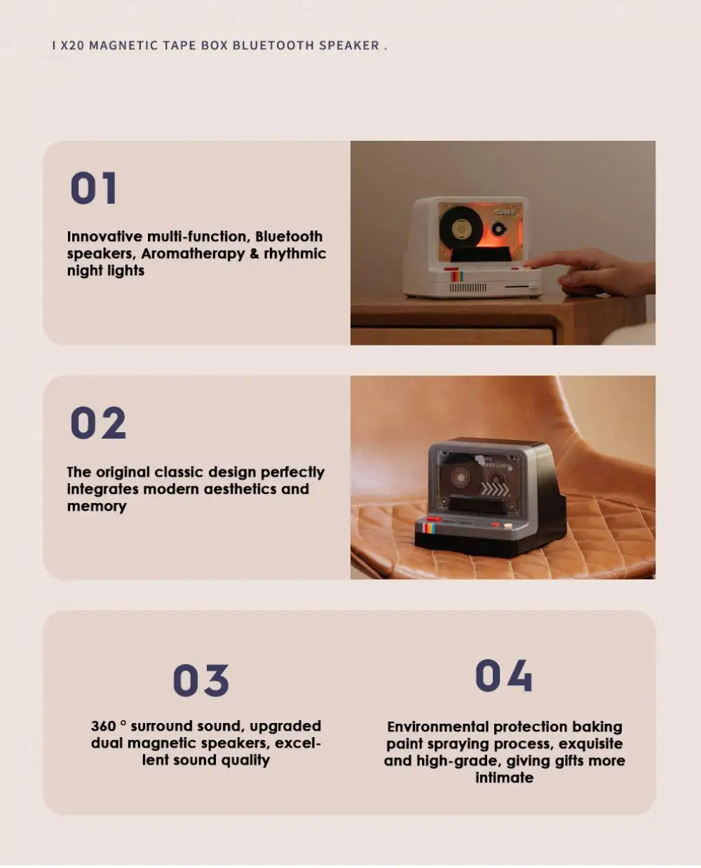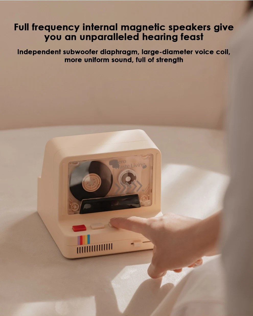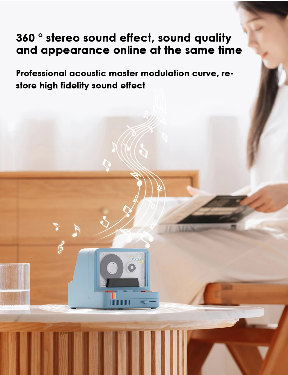 Altavoz inalámbrico HiFi clásico retro Altavoz de dormitorio de larga espera de 1200mAh con luz nocturna rítmica de tableta