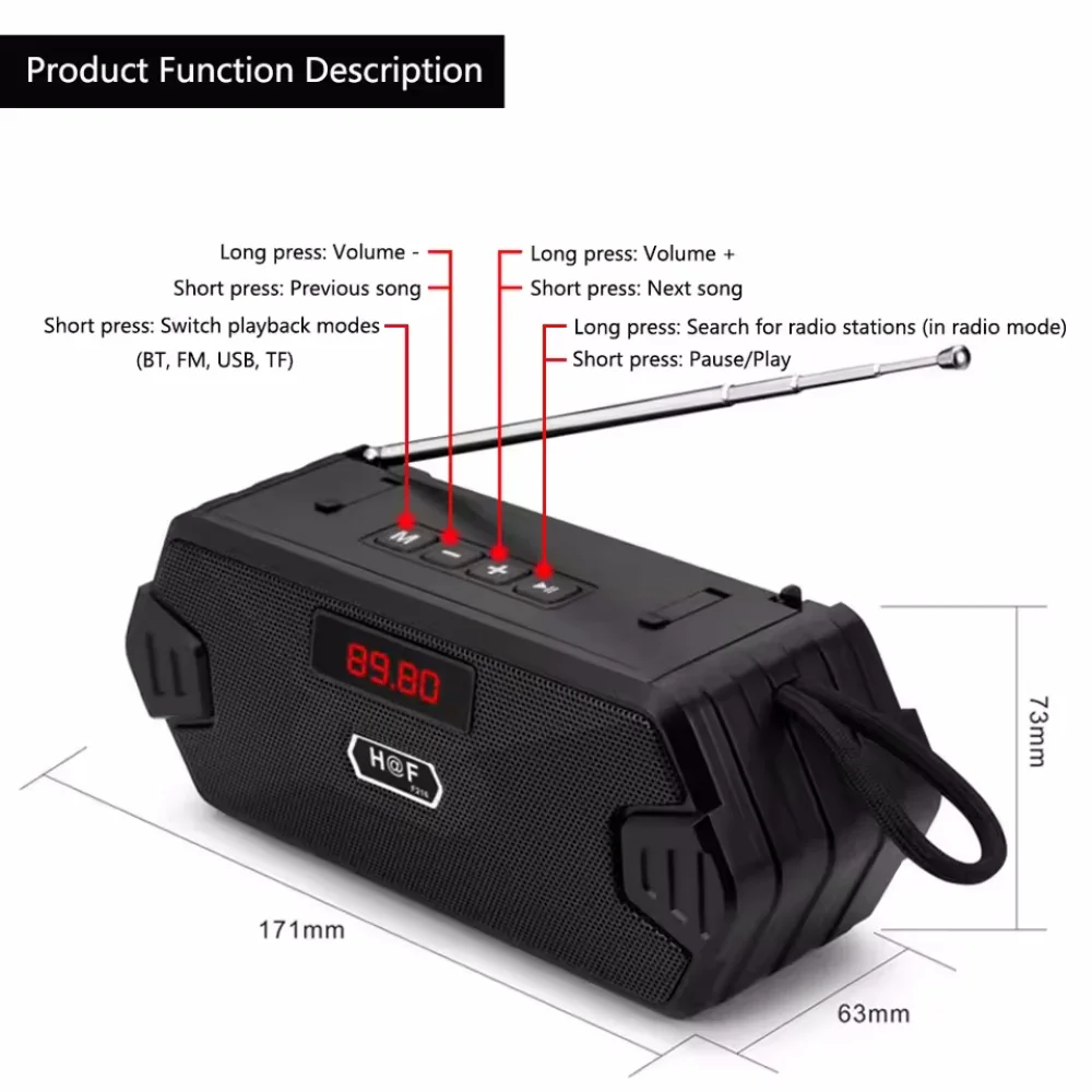 Comprar Altavoz inalámbrico portátil, altavoces USB para exteriores compatibles con Bluetooth con receptor de Radio FM, altavoz AUX TF MP3 para teléfono y PC