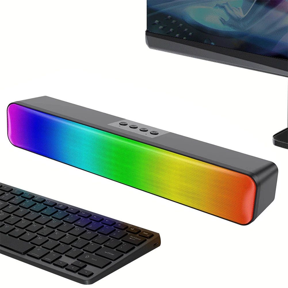 2. Diseño iluminado elegante:Este altavoz no solo ofrece una calidad de sonido excepcional, sino que también agrega un toque de estilo a la configuración de su escritorio o computadora. La Barra de sonido estéreo 3D presenta un diseño iluminador que mejora su atractivo visual. La elegante iluminación crea un ambiente cautivador en su habitación, por lo que es un complemento perfecto para cualquier decoración moderna.