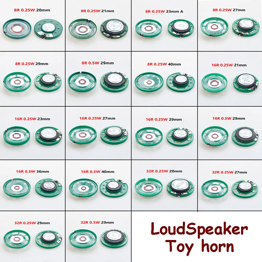 Comprar Altavoz de juguete redondo para coche, 2 piezas, 8, 16, 32 ohmios, 0,25 W, 0,25 W, 0,5 W, 8R, 16R, 32R, 20, 21, 23, 27, 29mm