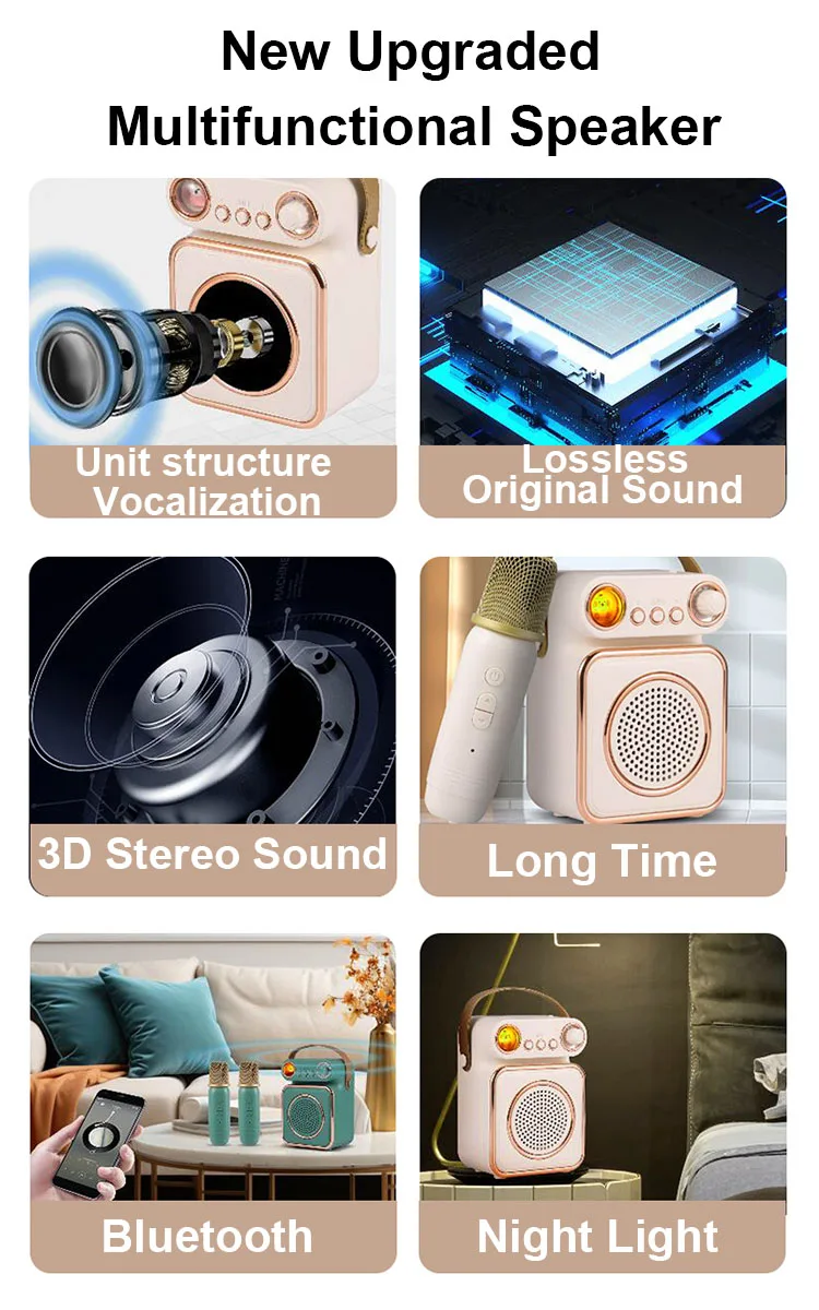 Comprar Altavoz con micrófono portátil para niños y adultos, Altavoz Bluetooth multifunción con 2 micrófonos estéreo Surround para el hogar