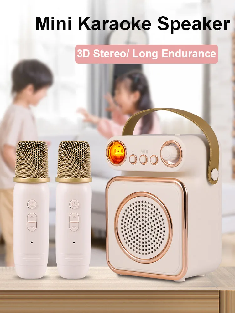 Altavoz Bluetooth de Karaoke portátil con 2 micrófonos inalámbricos, luz nocturna, micrófono de sonido estéreo para niños, máquina de canto familiar