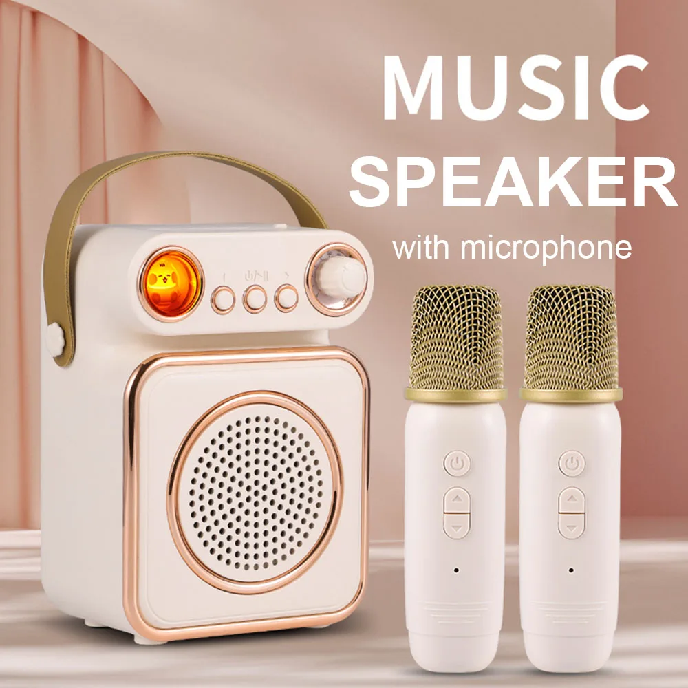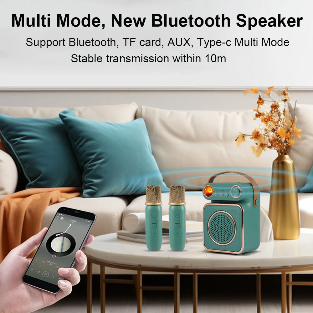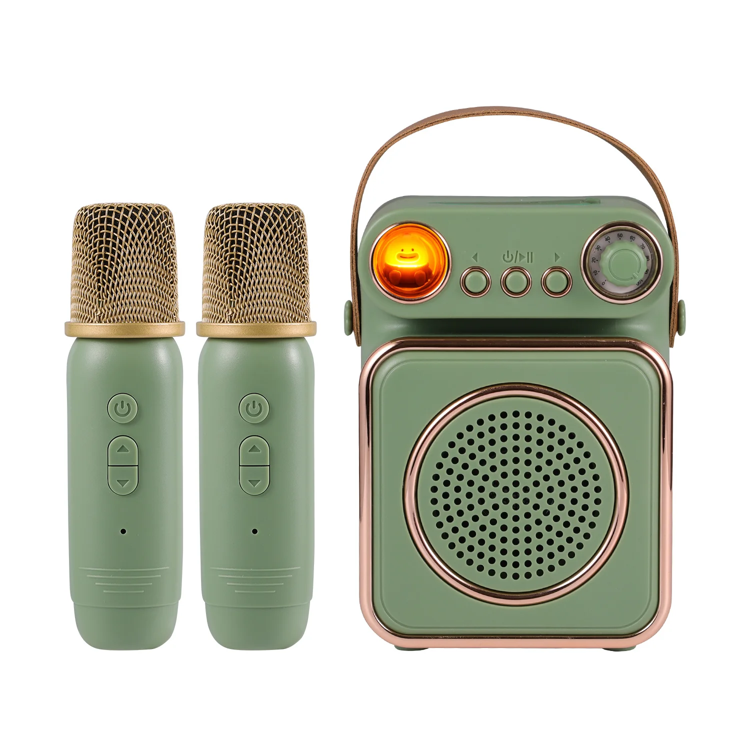 Altavoz Bluetooth de Karaoke portátil con 2 micrófonos inalámbricos, luz nocturna, micrófono de sonido estéreo para niños, máquina de canto familiar