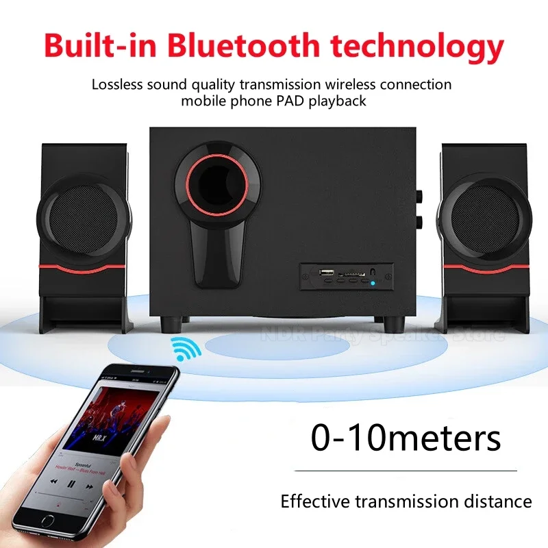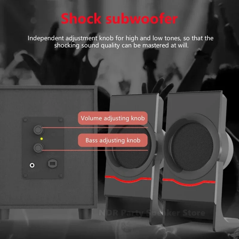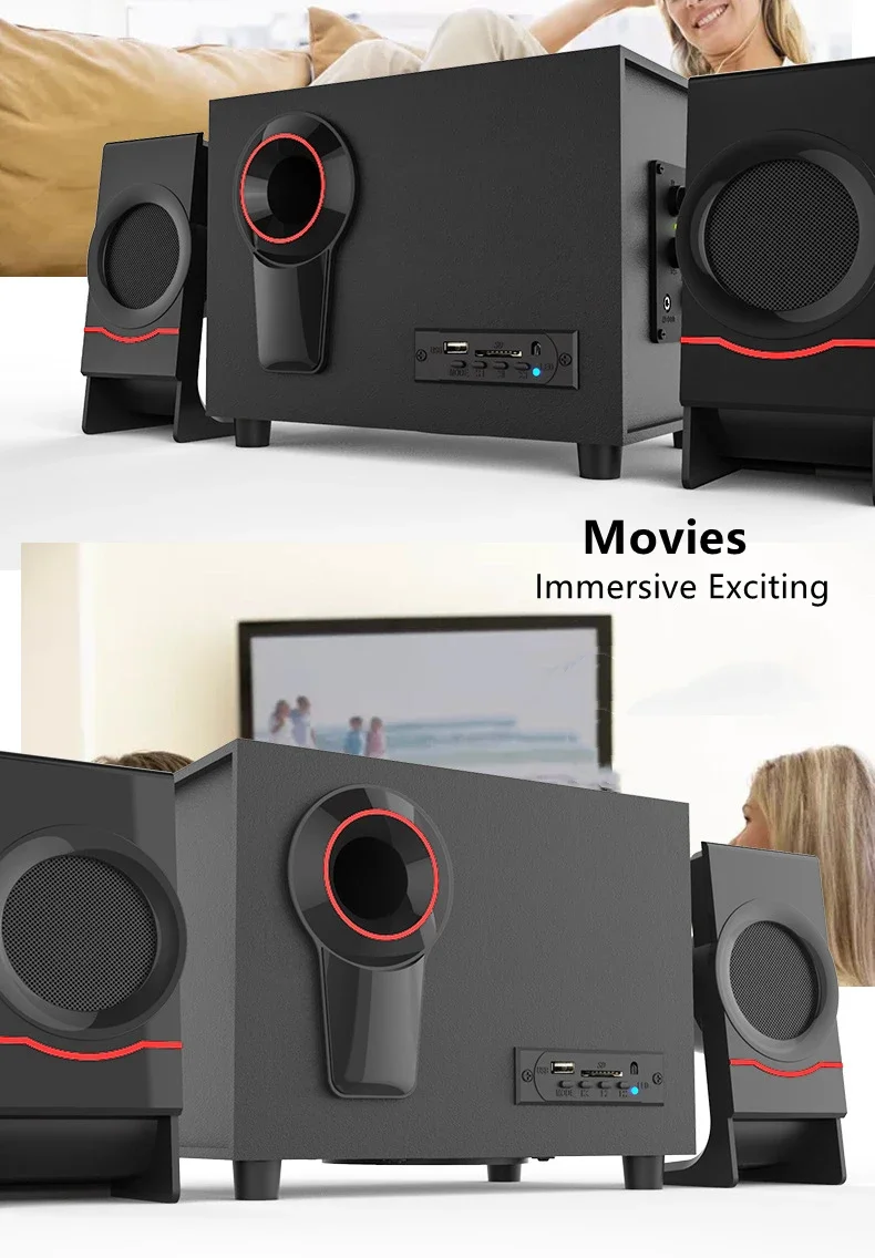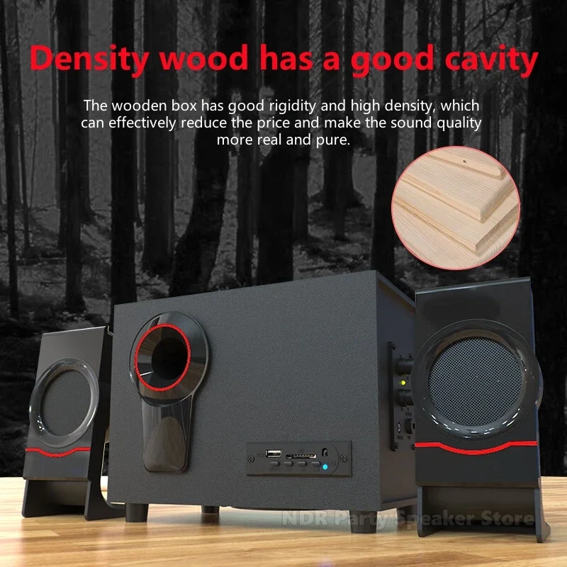 Comprar Altavoz Multimedia familiar de madera 2,1, subwoofer pesado, Bluetooth, caja de sonido combinada, altavoces activos para ordenador de mesa