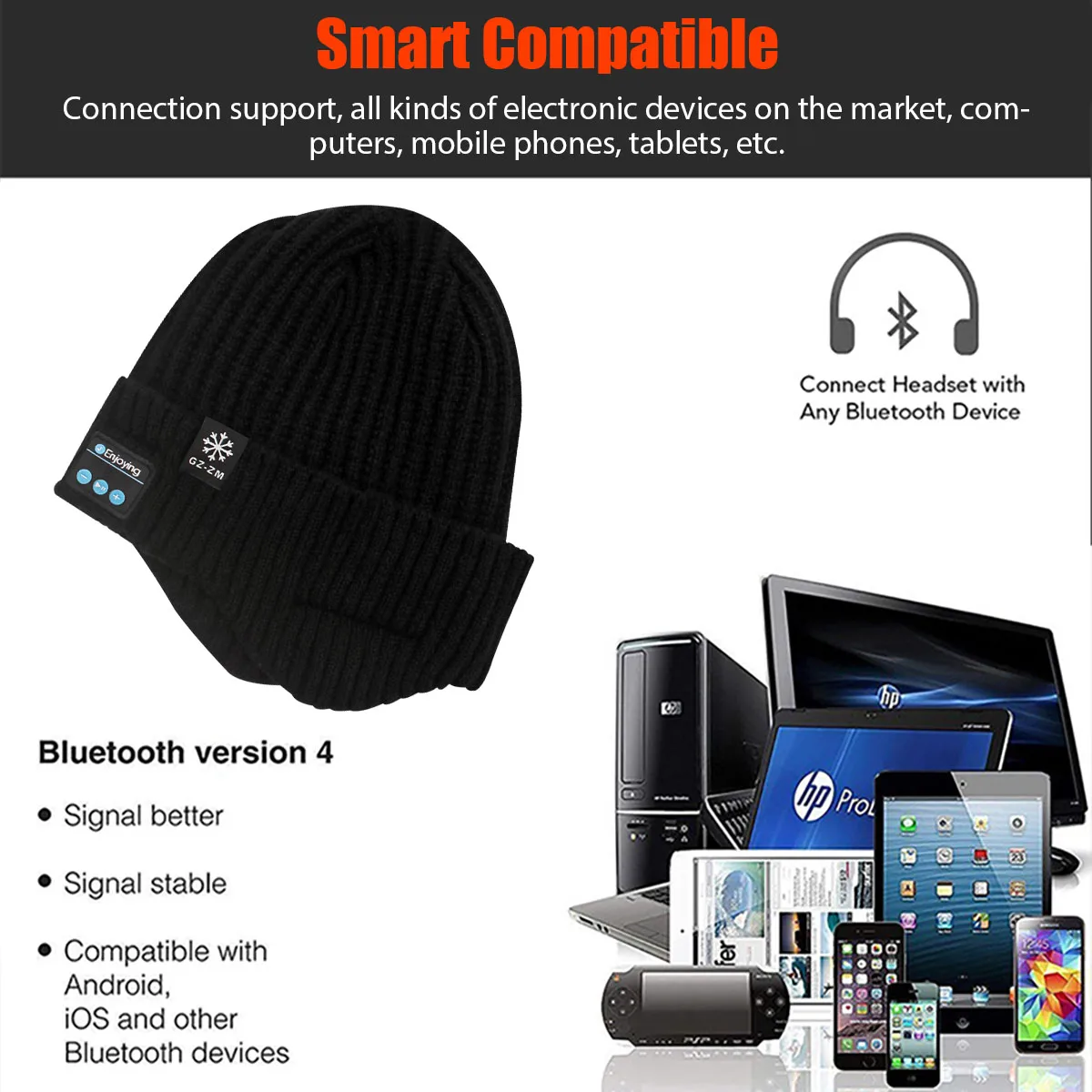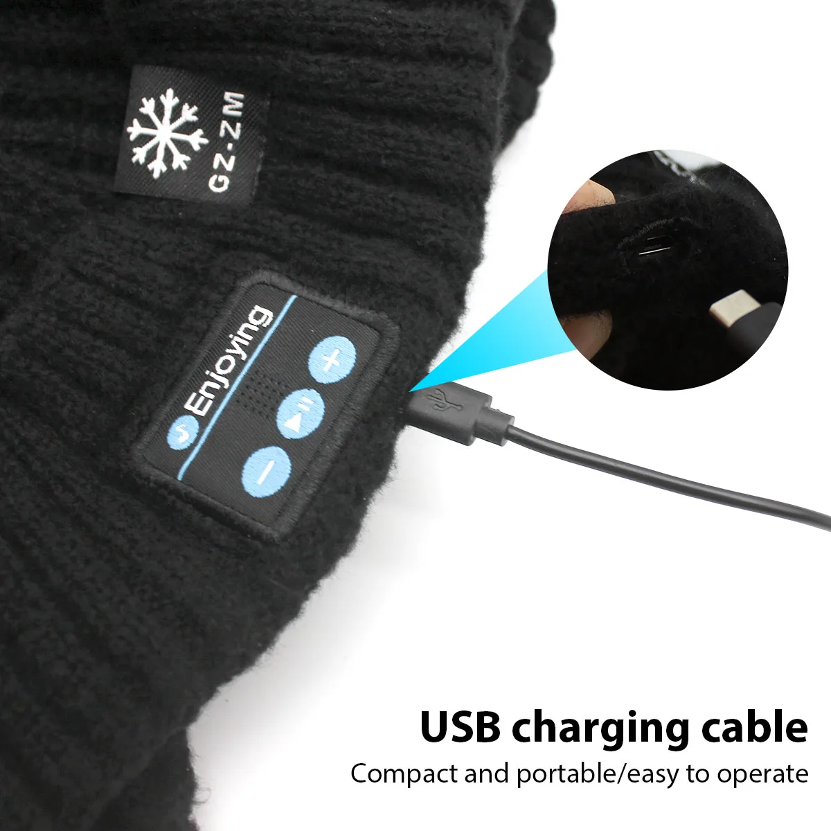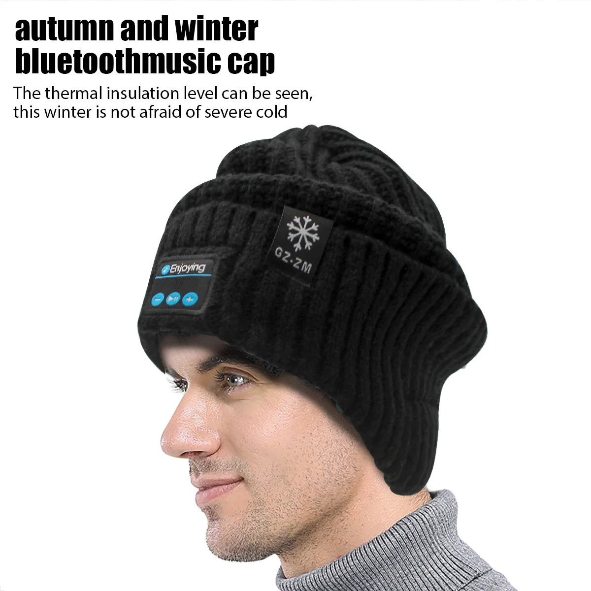 Altavoz de música Bluetooth 5,0 para hombres y mujeres, gorro de punto suave y cálido para invierno con micrófono incorporado, auriculares para regalo de Navidad