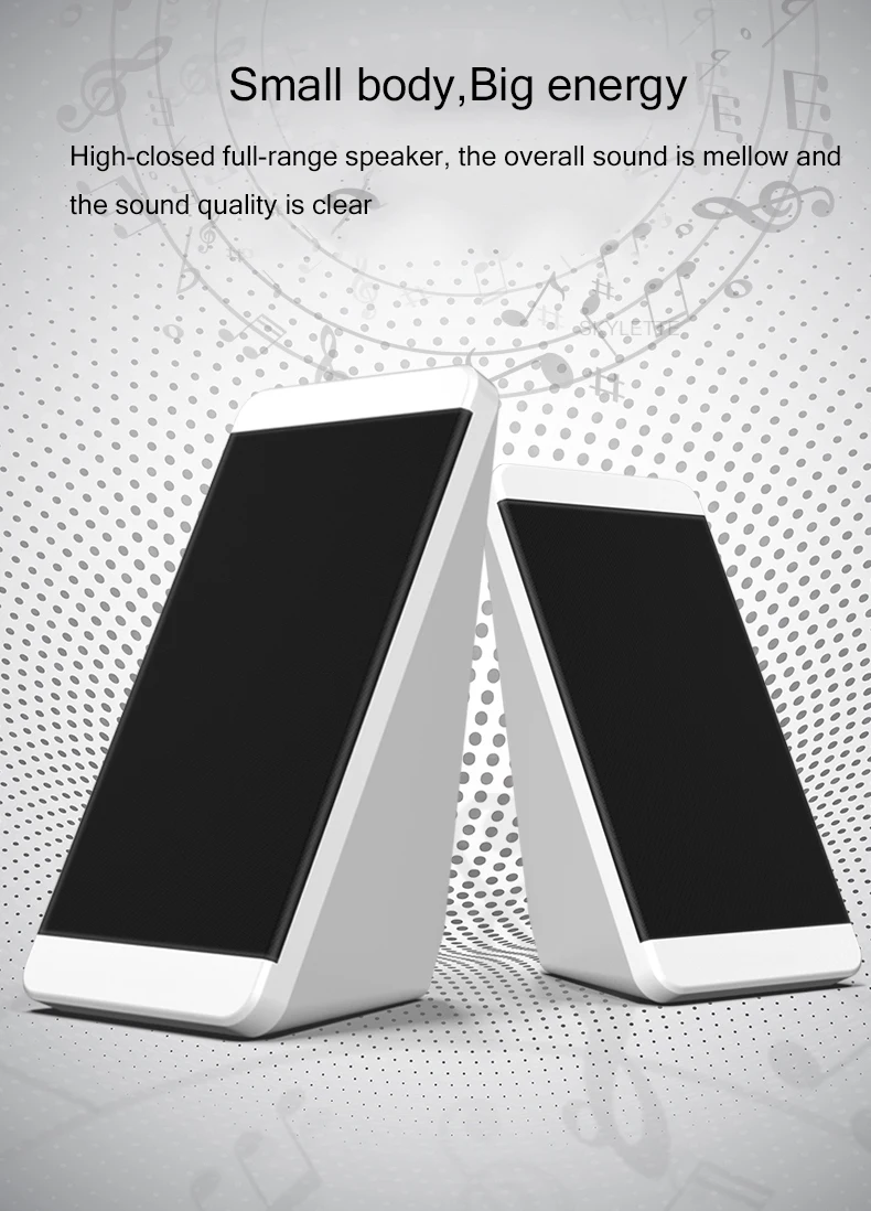 Solo necesita un puerto USB para cargar, el altavoz es compatible con todos los dispositivos de interfaz de audio de 3,5 mm, como computadoras de escritorio, portátiles, teléfonos móviles, MP3, MP4, etc.