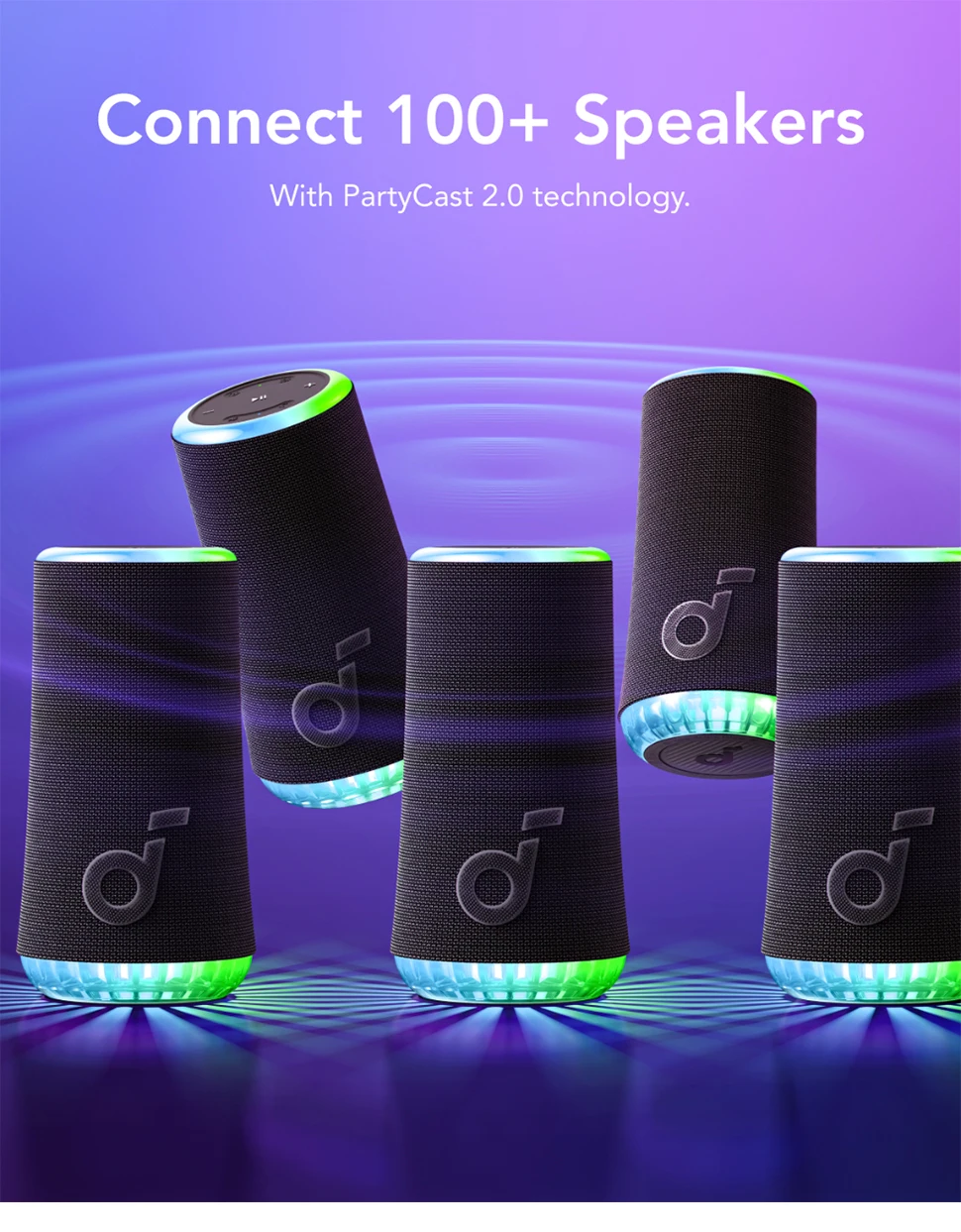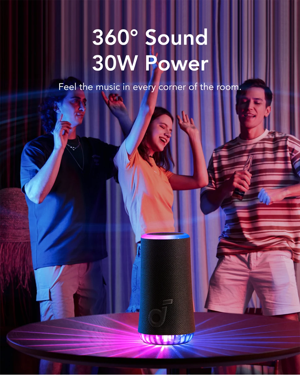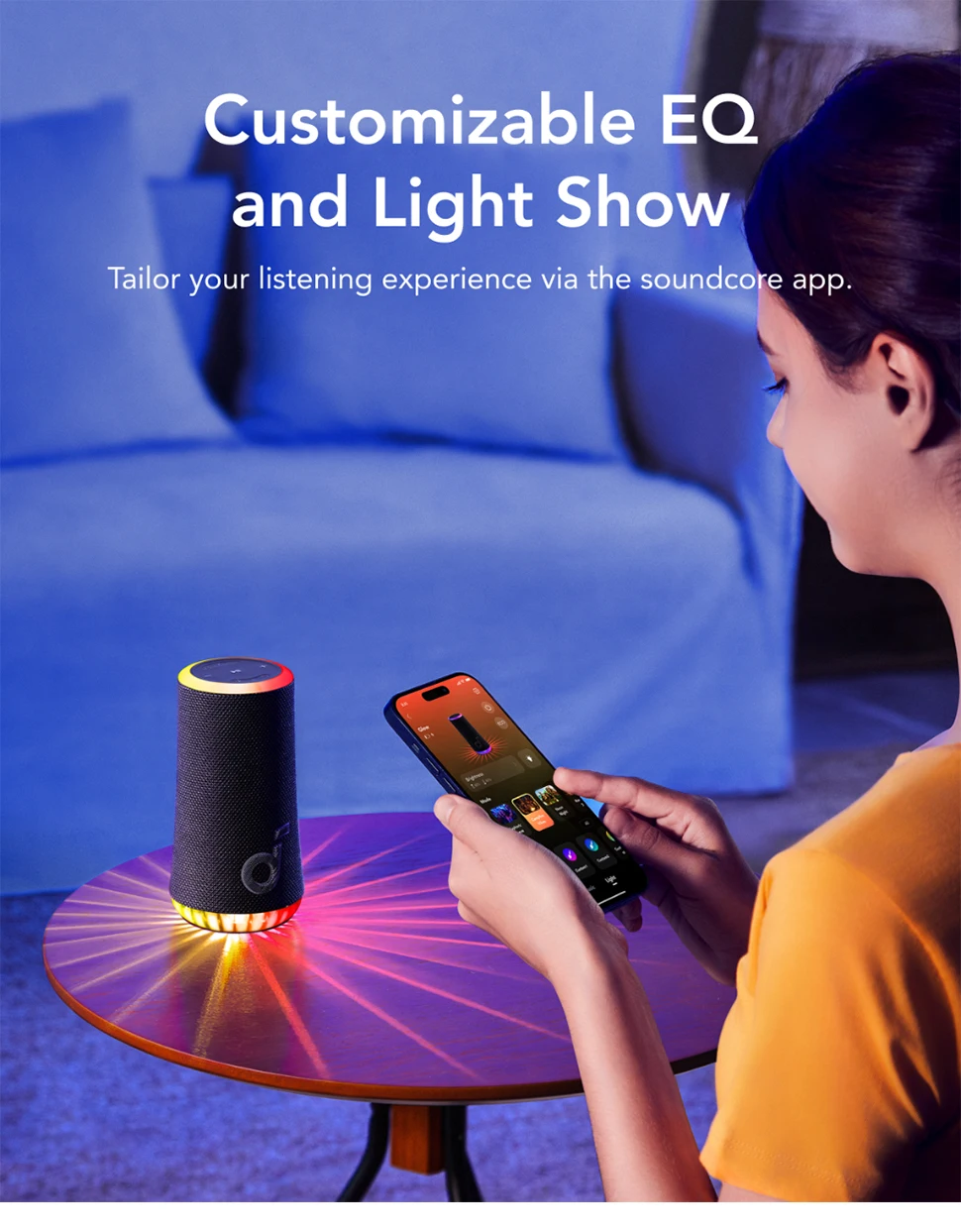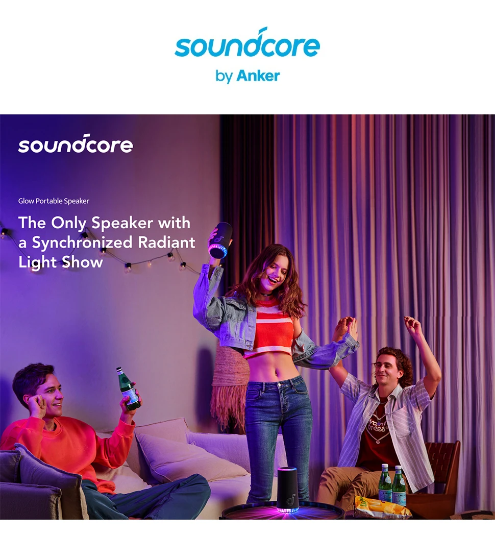 Comprar Altavoz portátil Glow de Soundcore con 30W 360 ° Sonido, luz radiante sincronizada, reproducción de 18 horas, EQ y espectáculo de luces personalizables