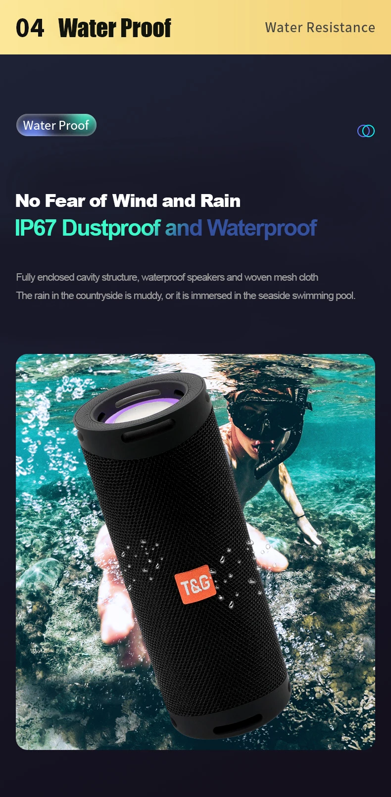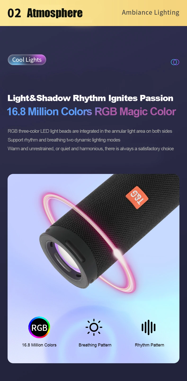 Altavoz portátil inalámbrico para exteriores TG289, columna estéreo con luz de Color, subwoofer impermeable, caja de sonido Bluetooth, compatible con USB/TF/FM