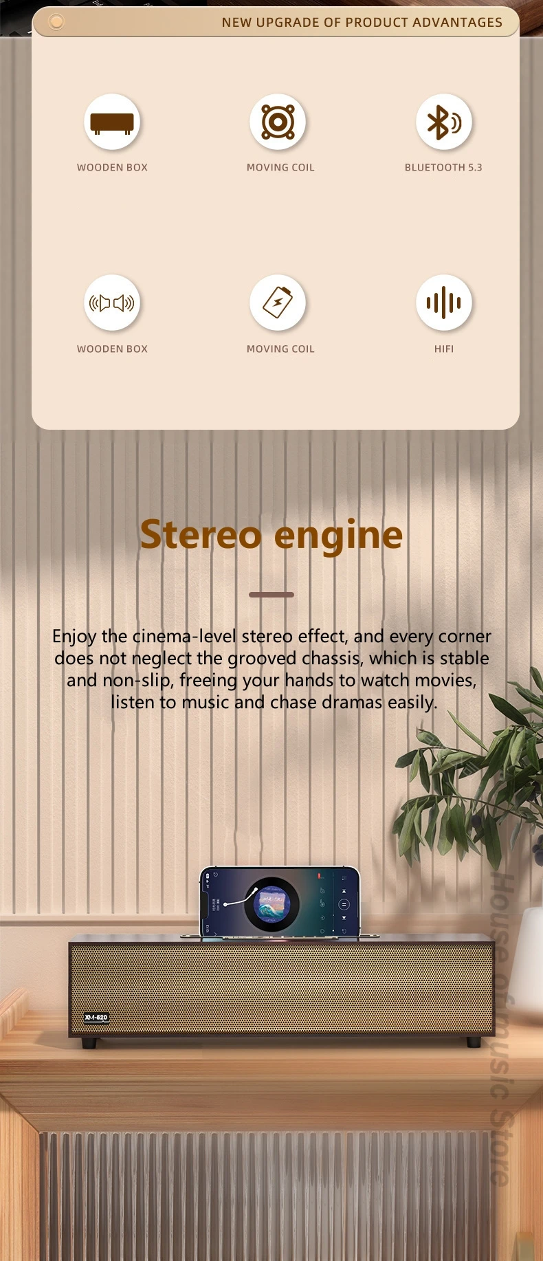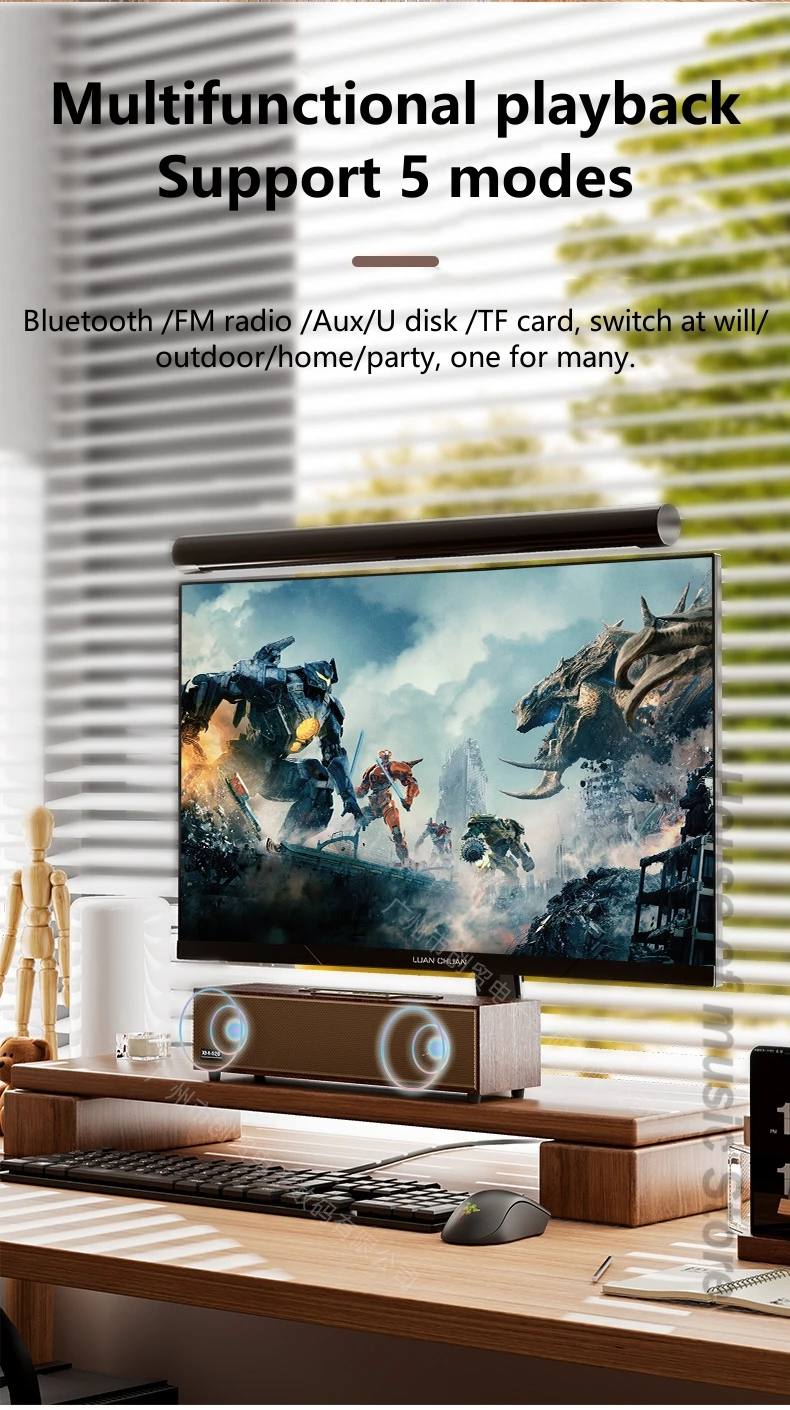 Funciones: Bluetooth, unidad flash USB, tarjeta TF, Aux, FM, llamada, TWS, soporte para teléfono móvil.