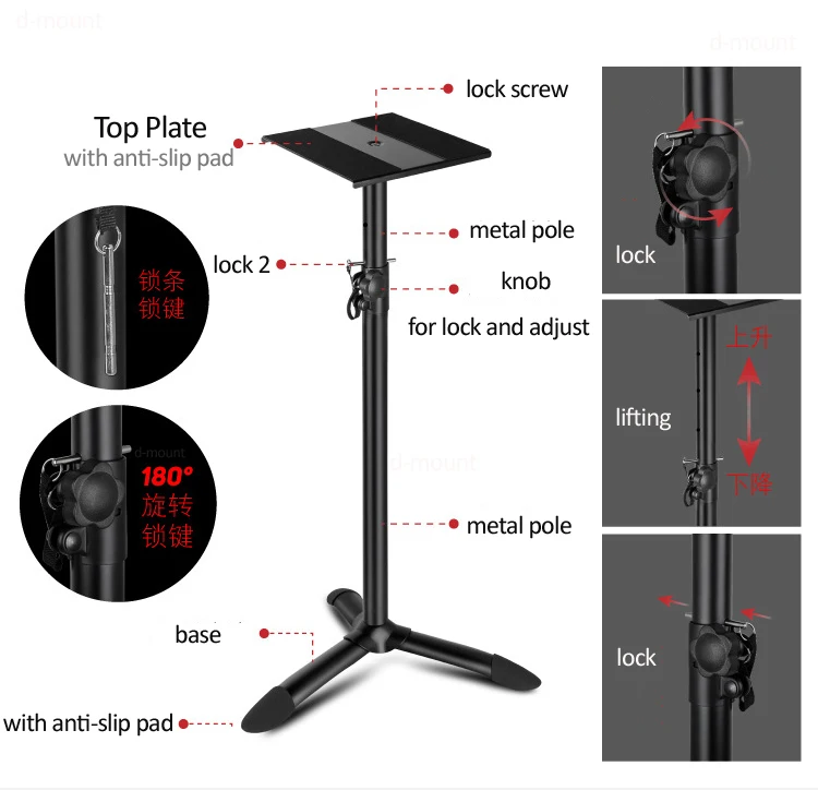 Carga máxima: 25KG/55LBS (sugerida para altavoces de menos de 15kg).