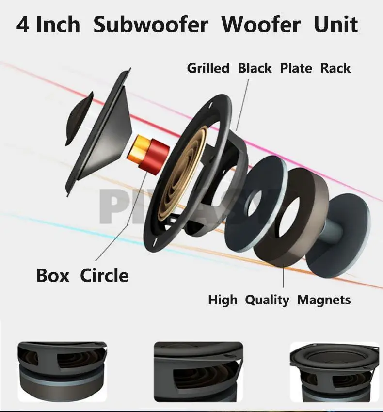 Altavoz subwoofer de 4 pulgadas, estantería pasiva, altavoz HiFi, altavoz de sonido envolvente de tres vías, caja de sonido, altavoz de potencia de 60W, un par