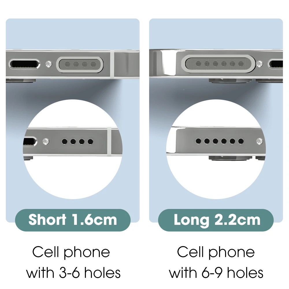 Modelos cortos: adecuado para teléfonos móviles dentro de 3-6 agujeros (Universal en 6 agujeros, medición de más de 7 agujeros), un diámetro de pegatina de polvo único de 16mm, Y el diámetro total de la boca del altavoz de 7 o más puede ser aplicable dentro de 16mm.
