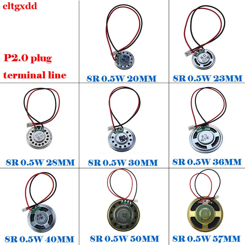 Altavoz ultrafino de 1 pieza 8R 0,5 W diámetro del altavoz 20 23 28 30 36 40 50 57 MM con línea de terminal con altavoz de línea de terminal de enchufe P2.0