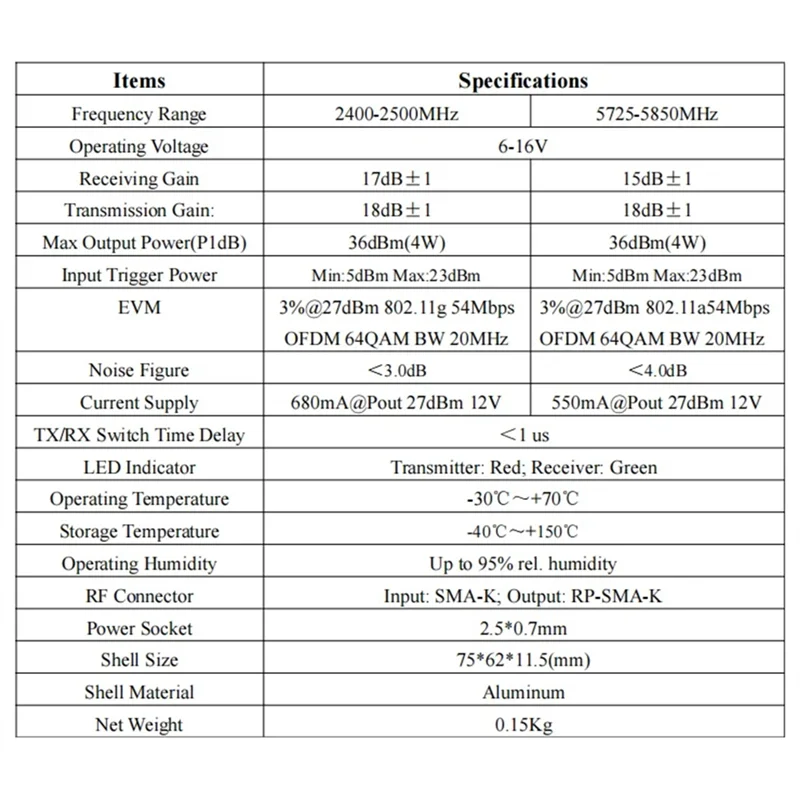 4. The output could reach 36dBm, when input power is 18dBm or 19dBm (default gain is 18dB).