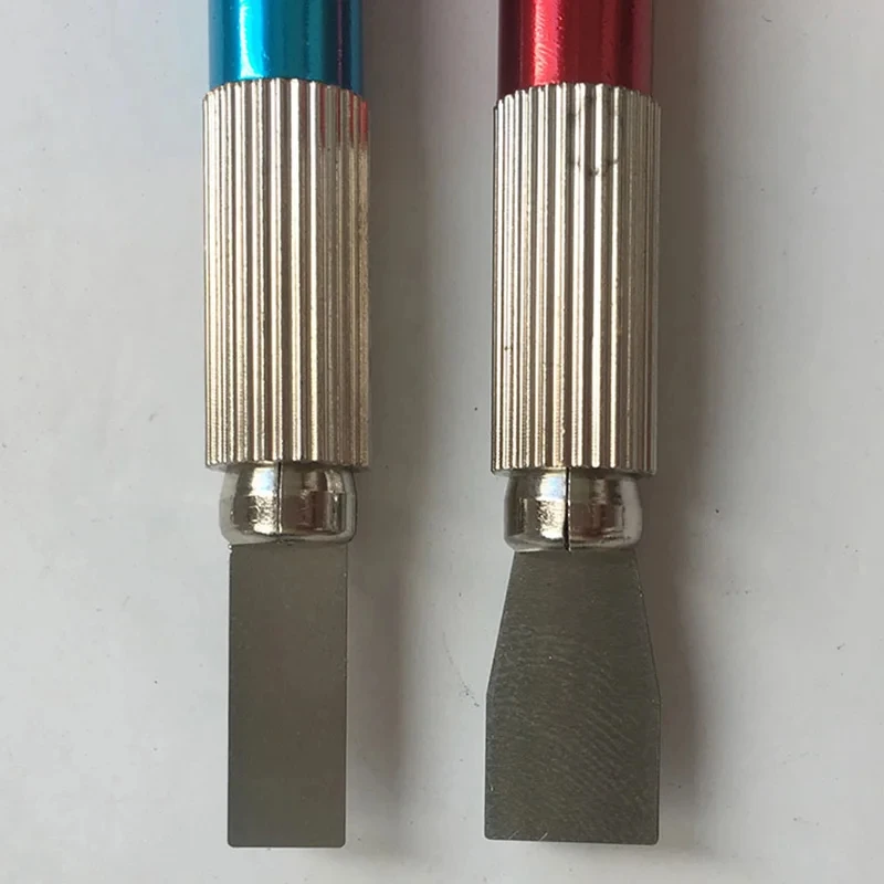 Características: pinza de latón, mejor cerrada, puede sujetar cuchillas más delgadas.