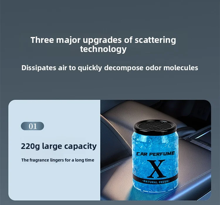 Los ingredientes de este gel ambientador para automóviles se extraen mediante la técnica del extracto vegetal. Es seguro y duradero. Además, puede eliminar el olor y refrescar el aire de forma eficaz. Es adecuado para el hogar, el automóvil, la oficina, la cafetería, el hotel, el baño, el salón, la galería y muchos otros lugares.