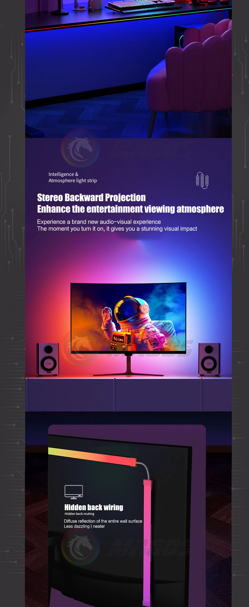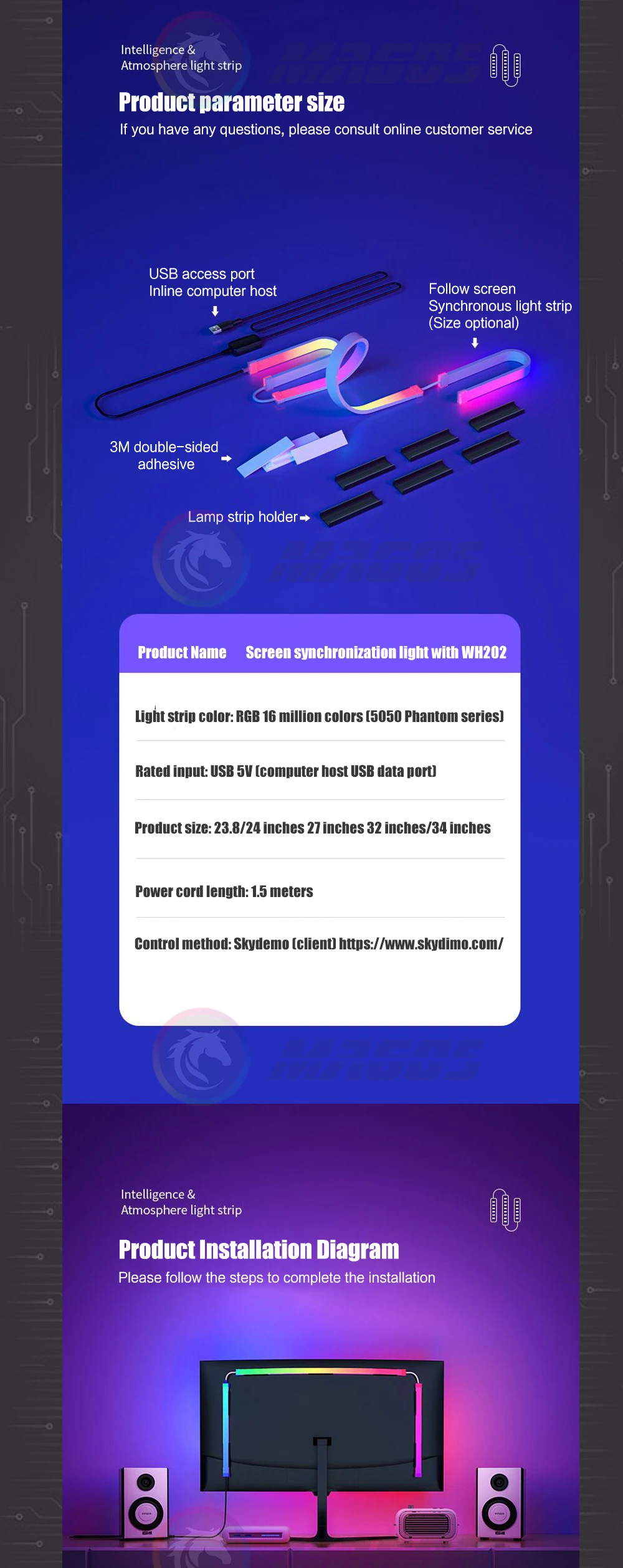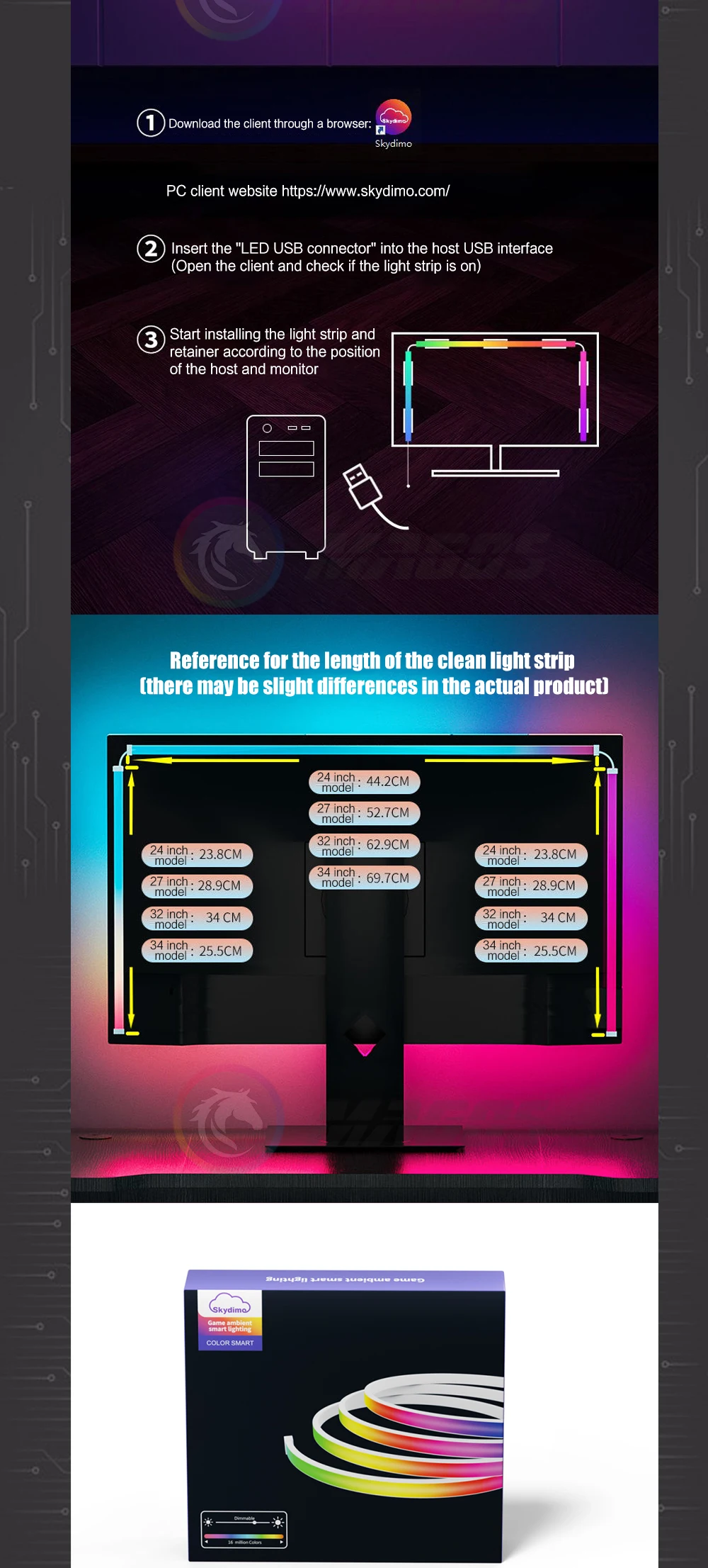 Comprar Ambilight-Pantalla de gabinete para jugadores de PC, tira LED ambiental de sincronización de Monitor de 24, 27, 32 y 34 pulgadas, sala de e-sport, 16 millones de RGB, Control de Software USB