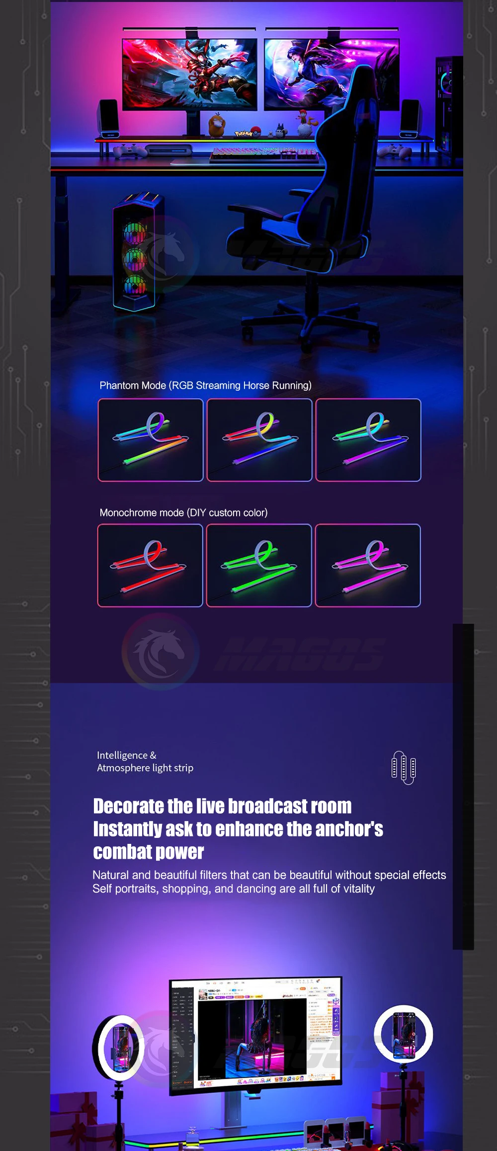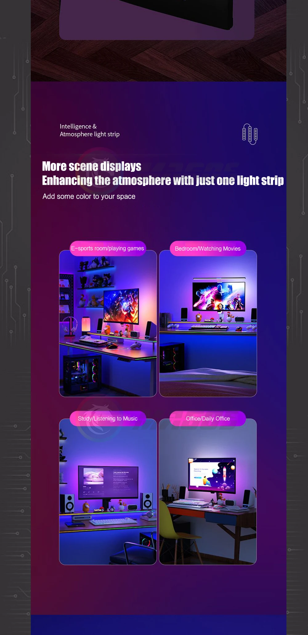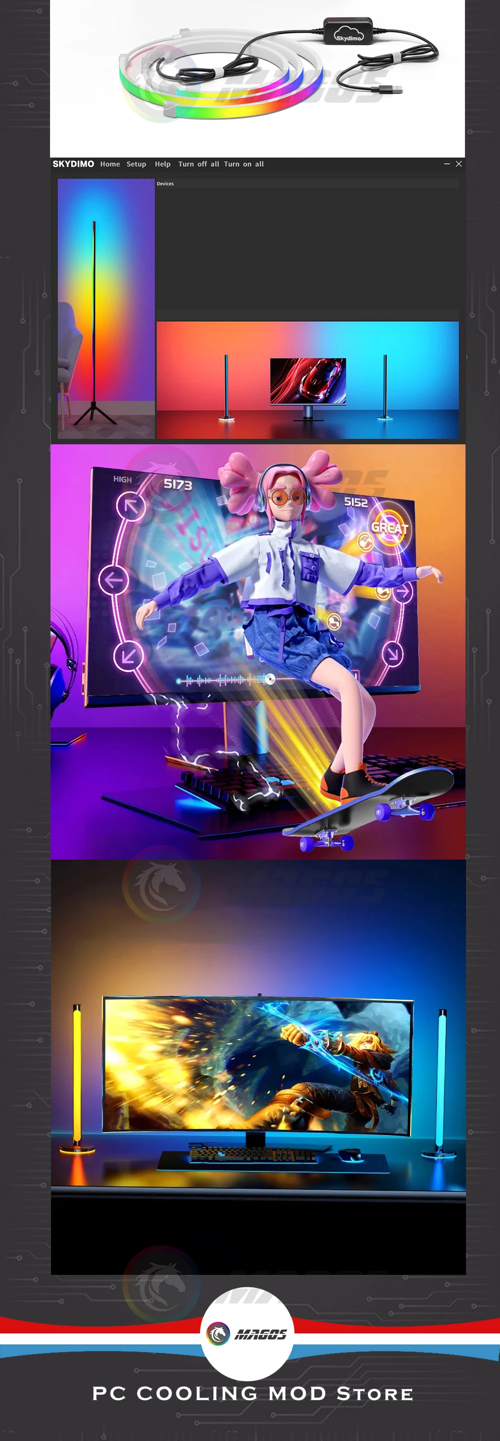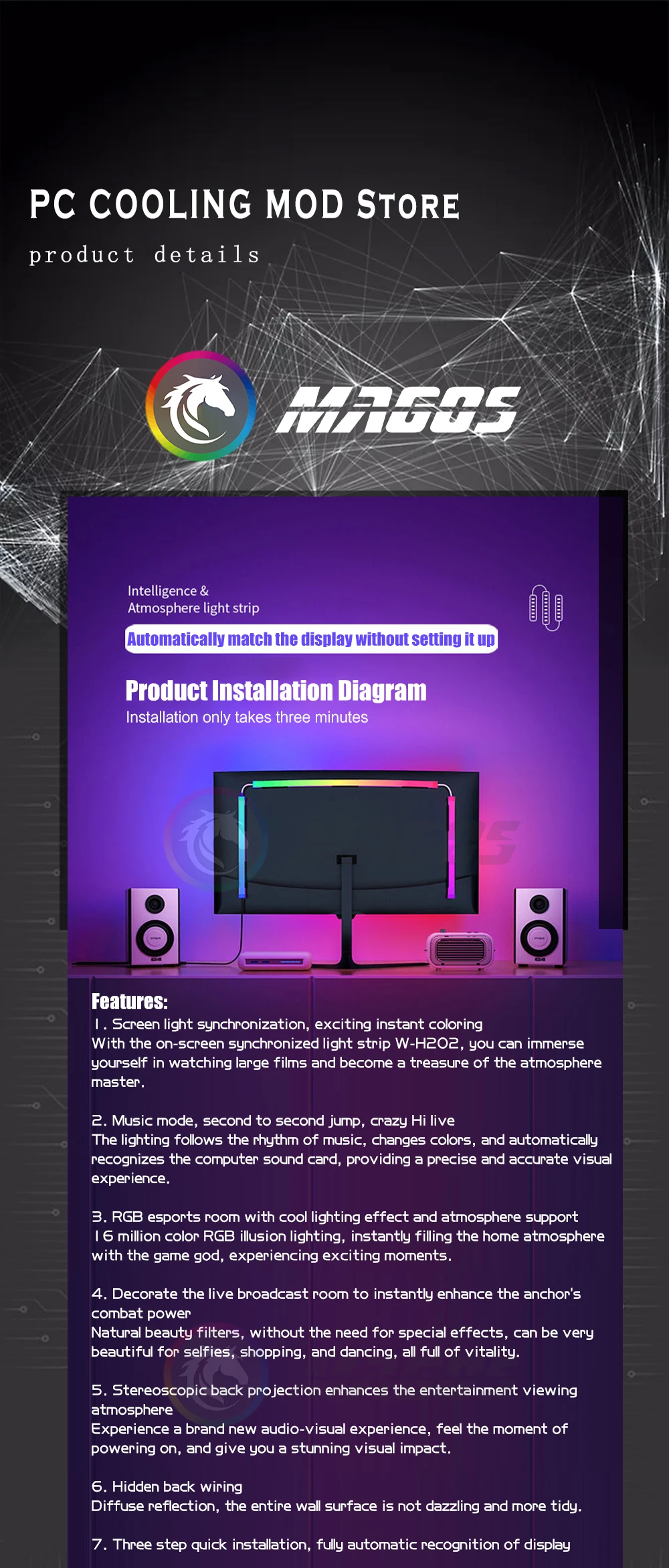 Comprar Ambilight-Pantalla de gabinete para jugadores de PC, tira LED ambiental de sincronización de Monitor de 24, 27, 32 y 34 pulgadas, sala de e-sport, 16 millones de RGB, Control de Software USB