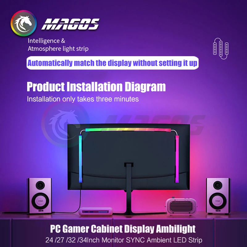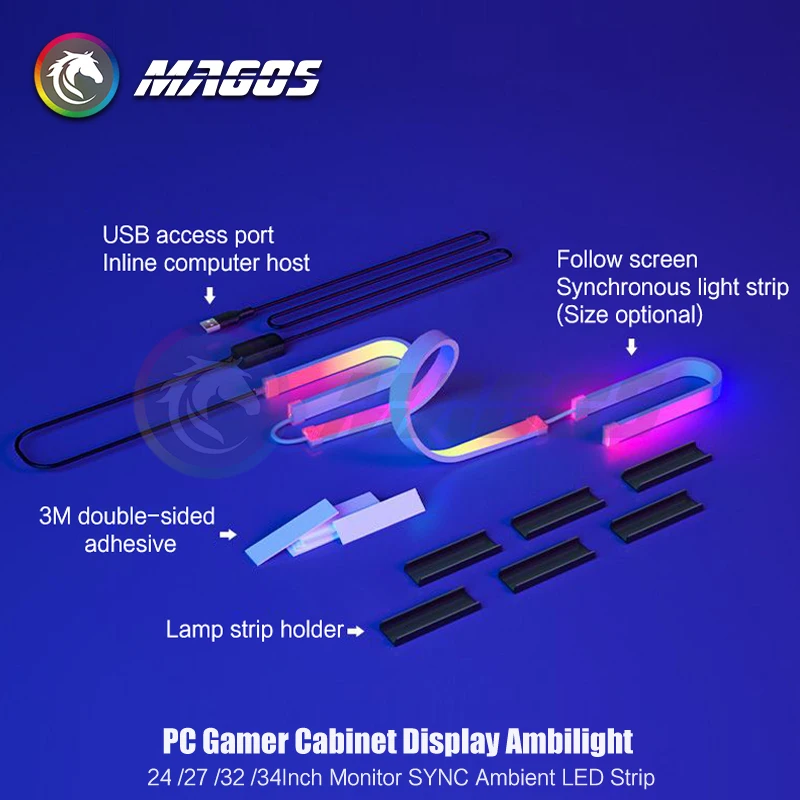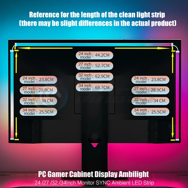 Comprar Ambilight-Pantalla de gabinete para jugadores de PC, tira LED ambiental de sincronización de Monitor de 24, 27, 32 y 34 pulgadas, sala de e-sport, 16 millones de RGB, Control de Software USB