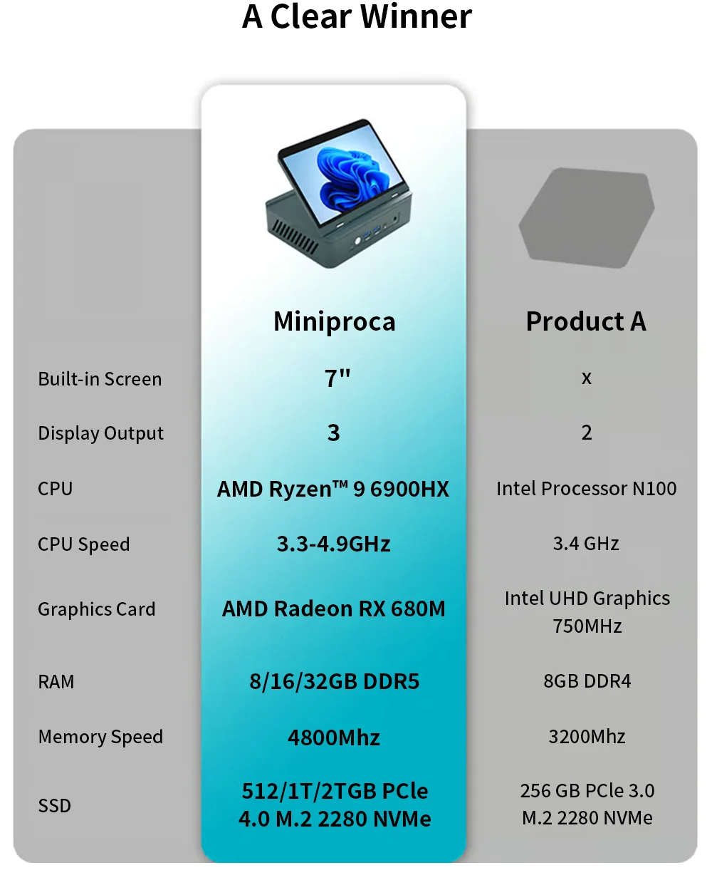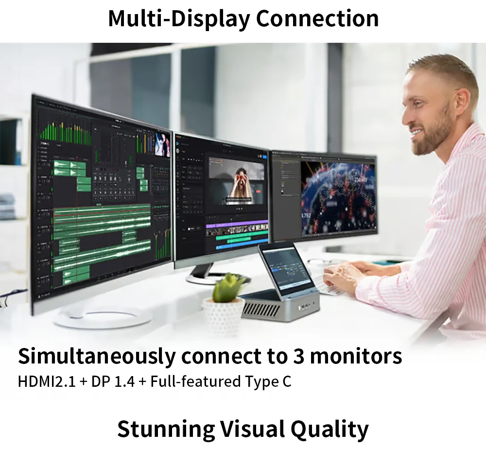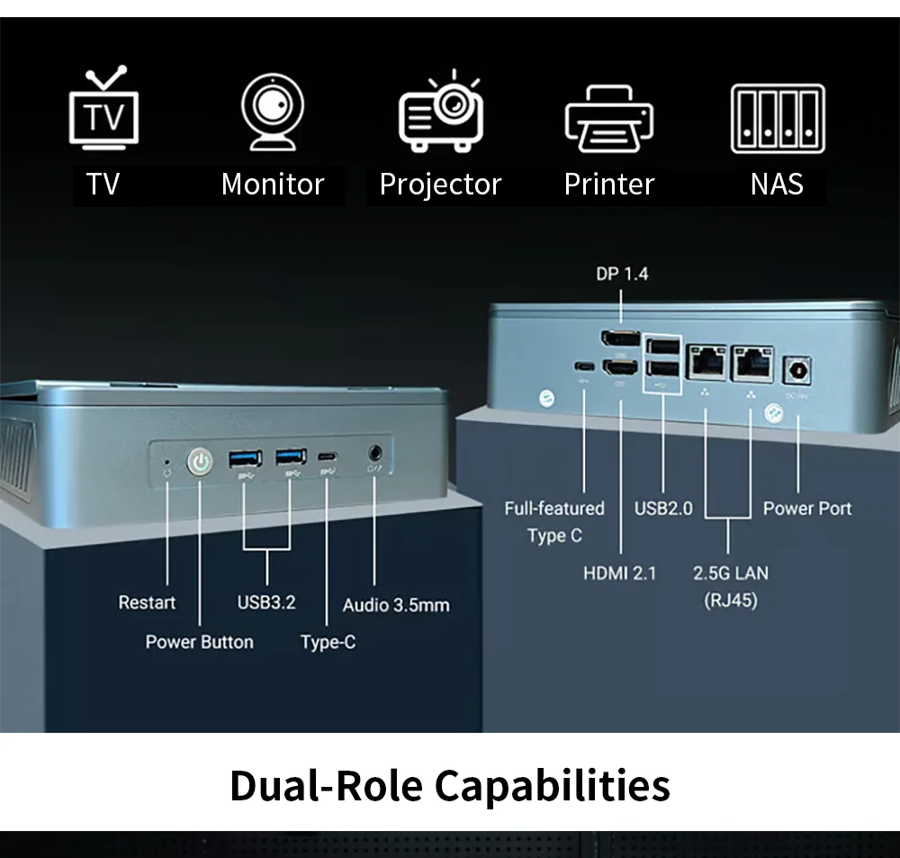 AMD 7 "pantalla Mini PC Ryzen 9 6900HX 8 Core DDR5 2xLAN 2,5G NVMe 2 * tipo C pequeño ordenador de oficina/hogar WiFi6 BT5.2 HD DP 7640HS