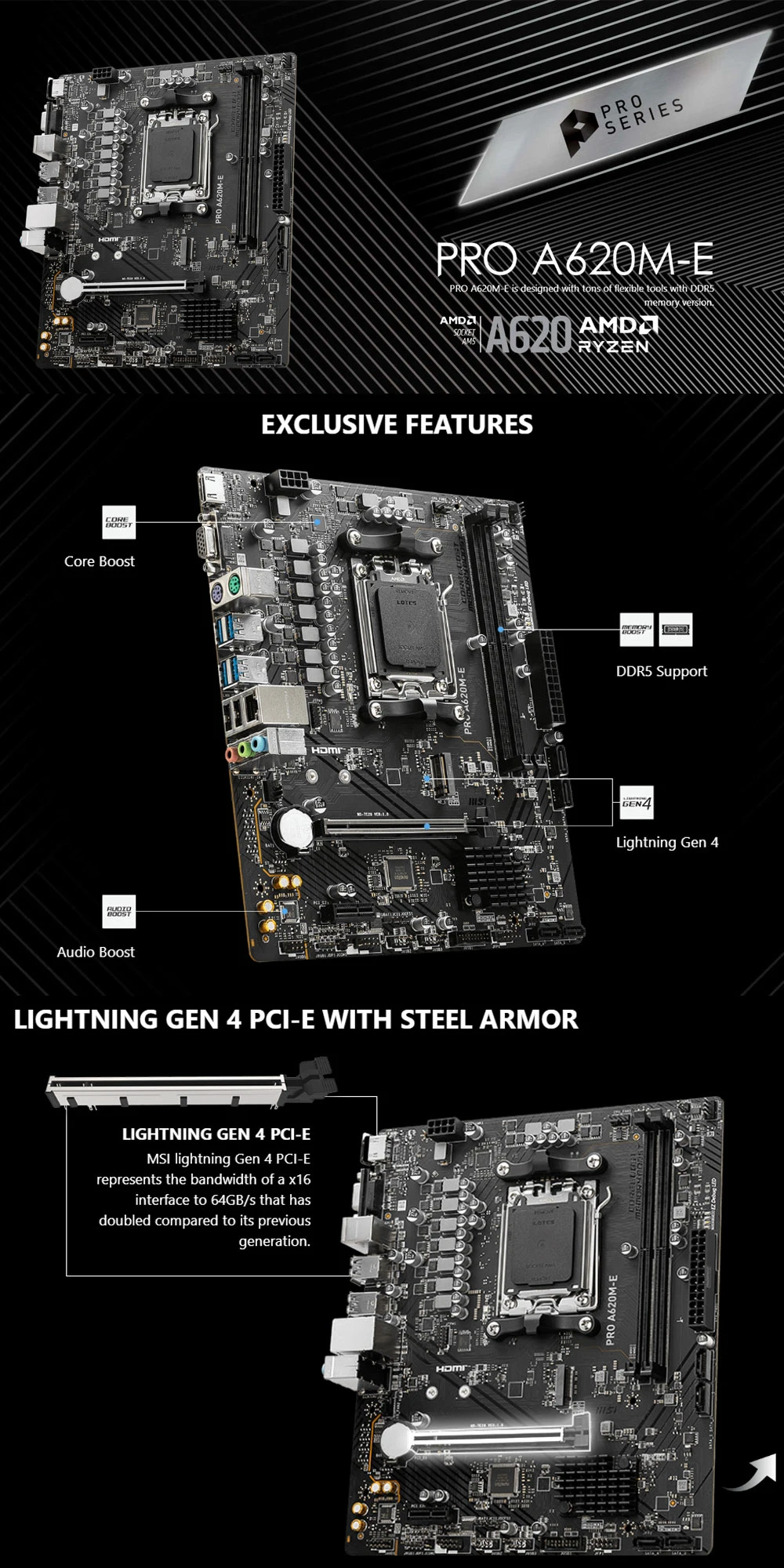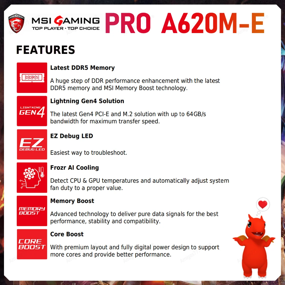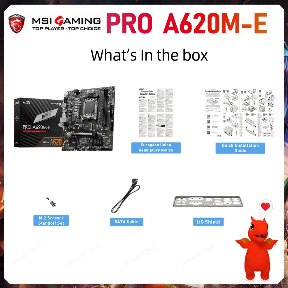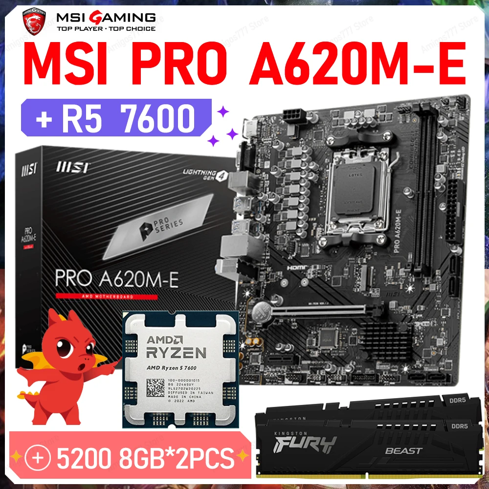 MSI PRO-Conjunto de placa base de CPU DDR5 AM5, conjunto combinado de RAM + R5 7600 con Mmeory + Kingston 5200MHz 8GB * 2, placa base de escritorio AMD A620, PCIE 4,0 M.2, nuevo