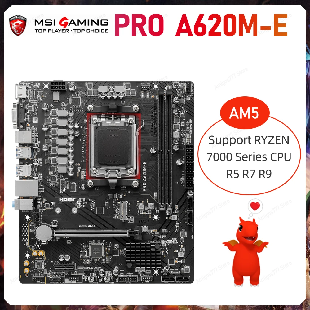 Comprar AMD-CPU AM5 R5 7600 R5, Kit de placa base MSI PRO A620M-E, DDR5, 8GB x 2 piezas, 5200MHz, memoria RAM, tarjeta micro-atx A620, nuevo