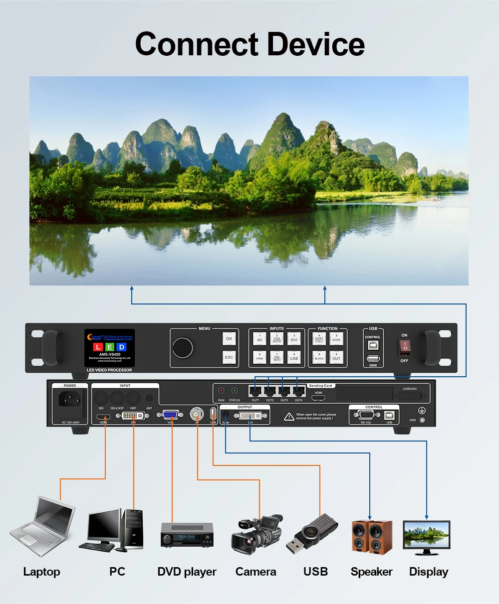 Controlador de pared de video LED Amoonsky VS400 Procesador de video LED todo en uno Integrado Novastar MSD600 Tarjeta de envío LED para pared LED