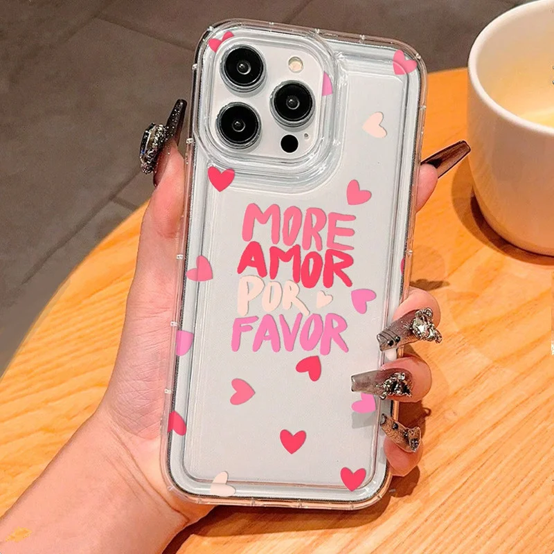 Love Heart Más Amor Por Favor Funda de teléfono de TPU suave para iPhone 16 Pro MAX 14 15 13 11 12 Mini XS SE20 XR 16e 7 8Plus Funda transparente