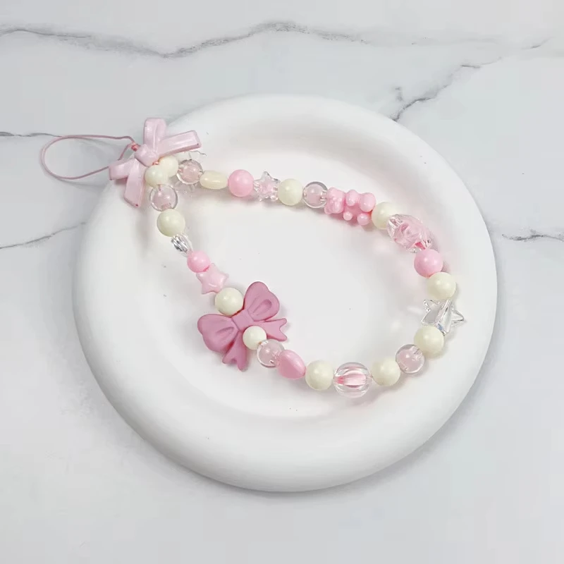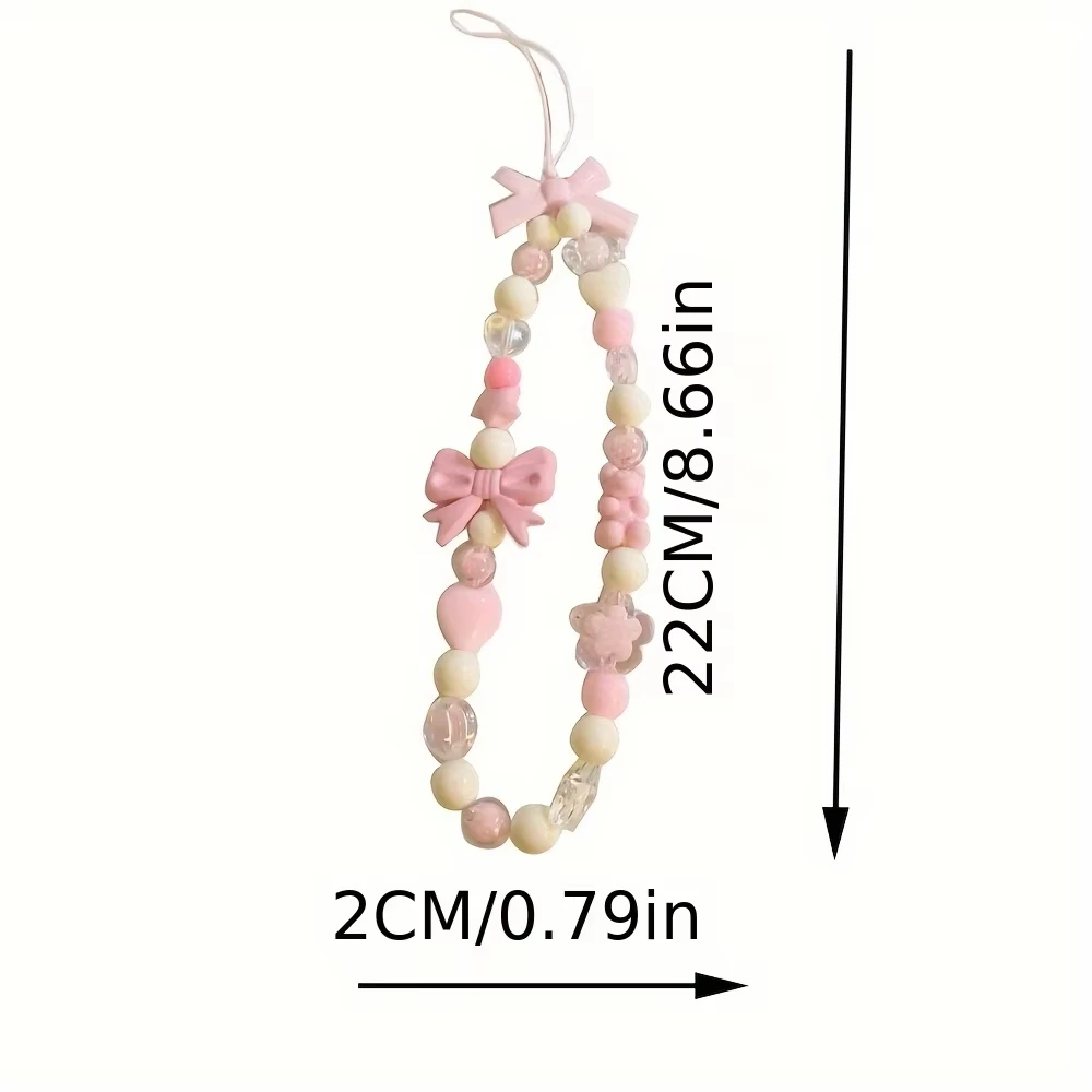 Amor corazón lazo nudo correa de muñeca corte dibujos animados teléfono encantos antipérdida cordón para teléfono móvil cuentas hecho a mano cuerda colgante llavero