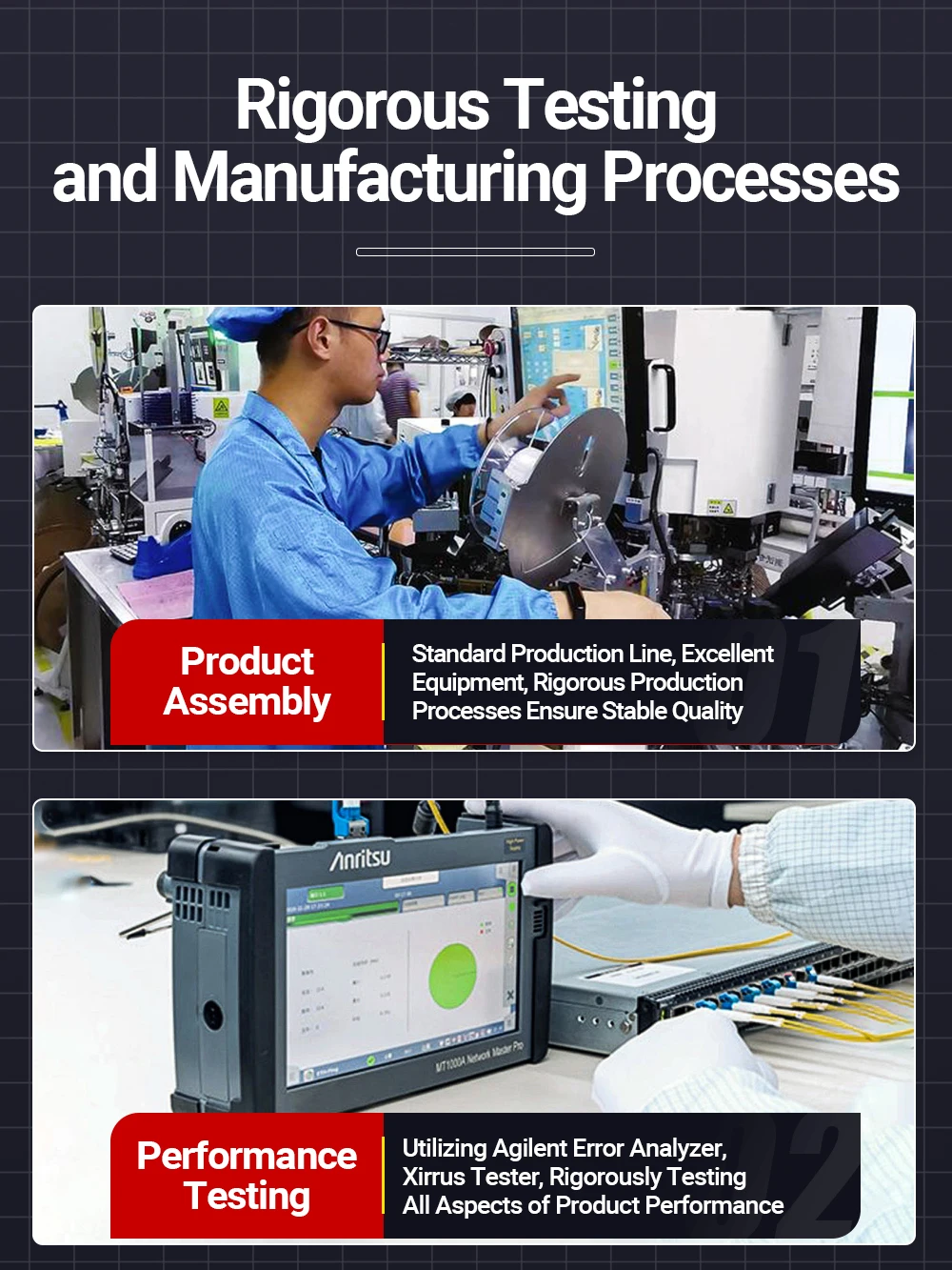 Cada SFP requiere que se escriba el código específico de la marca correspondiente, ya que los diferentes códigos de marca no son mutuamente compatibles.Las pruebas del producto se realizan nuevamente durante el proceso de escritura de códigos para garantizar una tasa de rendimiento del 100%.