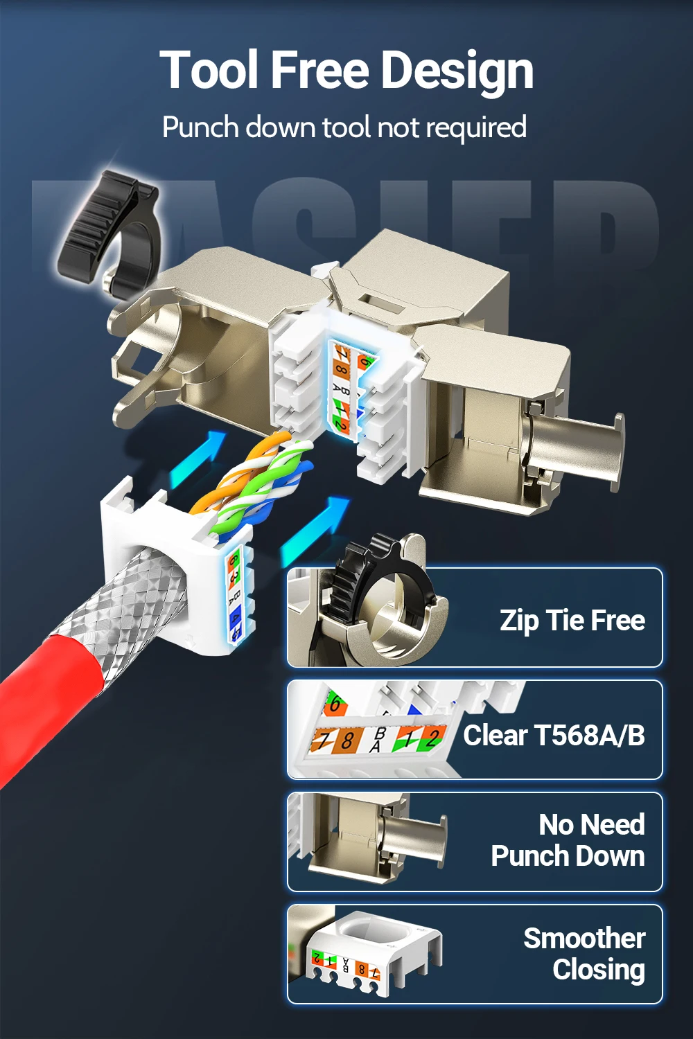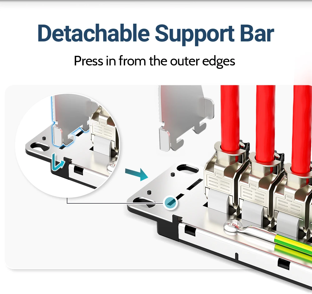 Conectividad confiable y fácil de usar: no se requiere herramienta de perforación para una personalización y mantenimiento rápidos, con una construcción robusta que garantiza conexiones estables en entornos de alta densidad