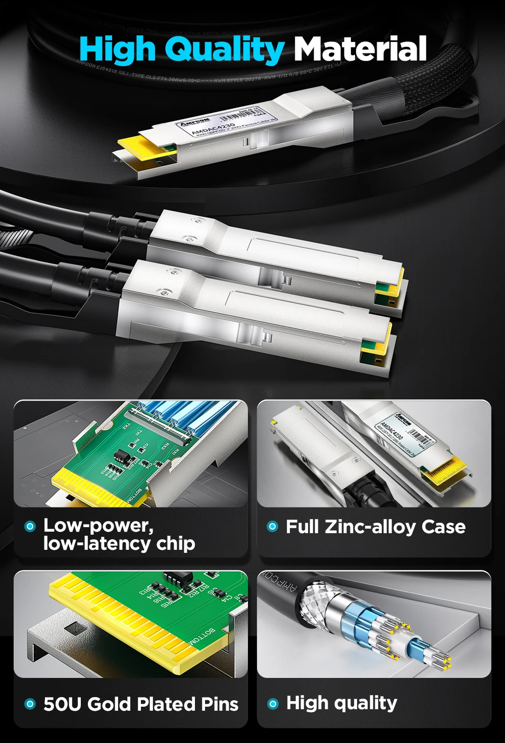 Passive copper cable direct connection method, no power supply required, nearly 0 power consumption
