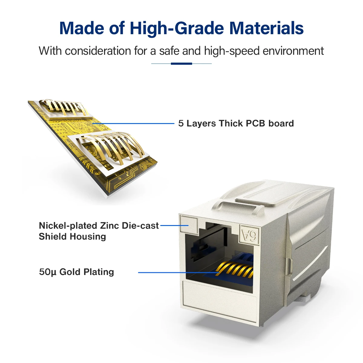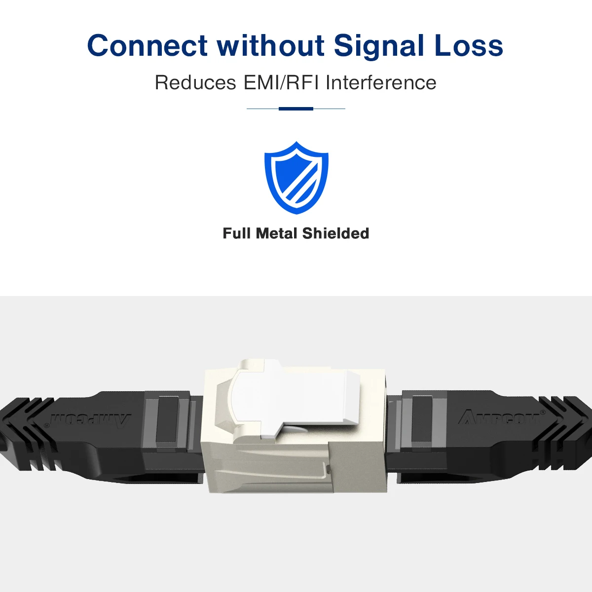 CAT6A RJ45 Acoplador en línea Keystone Jack, [ ETL Verificado/Patente de EE. UU.] AMPCOM Aleación de zinc Blindado STP Feed-Through RJ45 Jacks Hembra a Hembra
