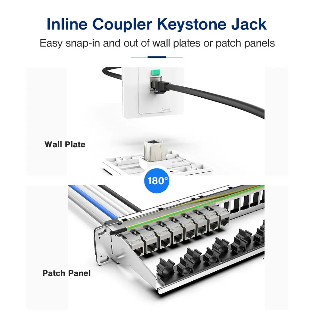 Acoplador en línea CAT6A Keystone para voz, redes domésticas, oficina en casa, audio, video y más;