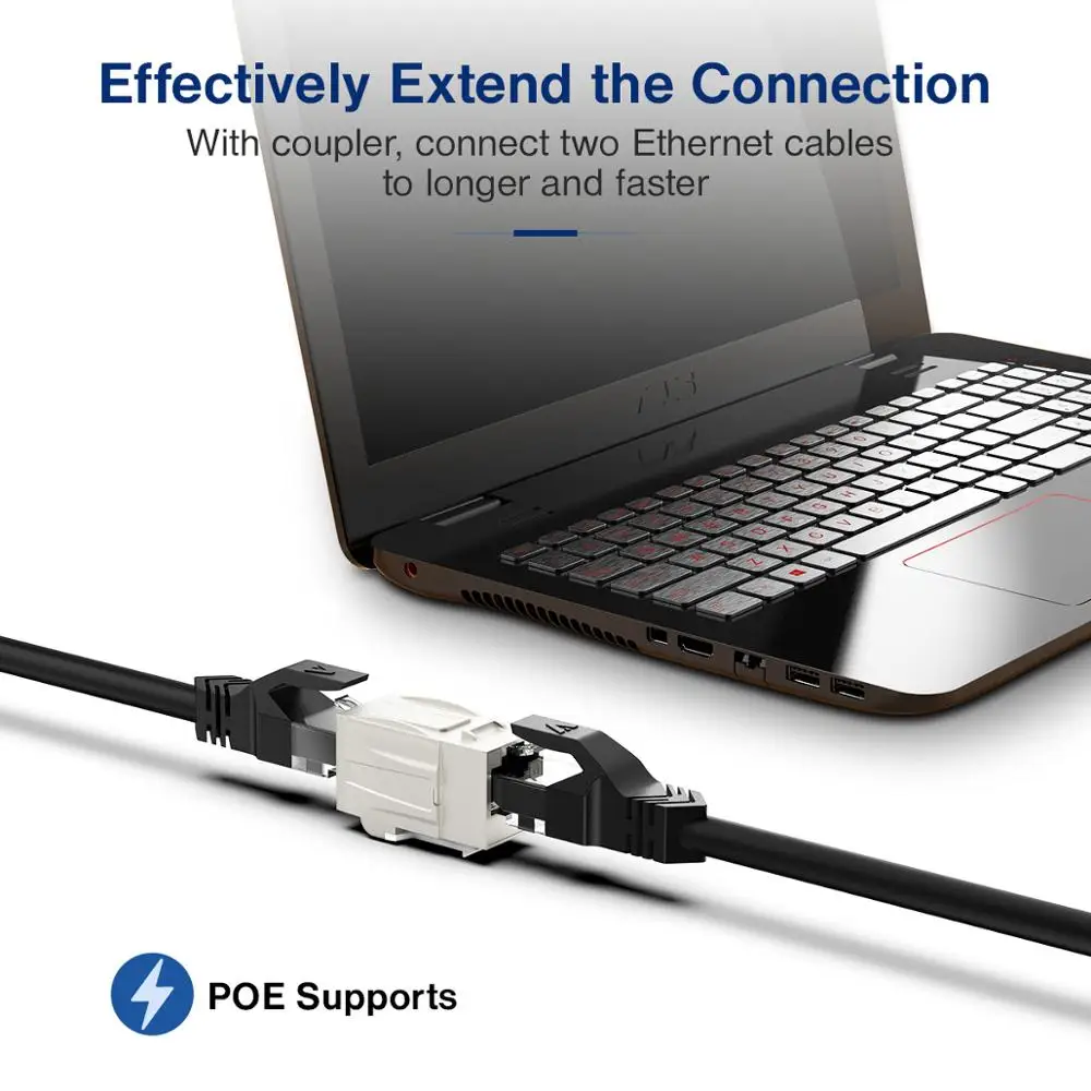 CAT6A RJ45 Acoplador en línea Keystone Jack, [ ETL Verificado/Patente de EE. UU.] AMPCOM Aleación de zinc Blindado STP Feed-Through RJ45 Jacks Hembra a Hembra