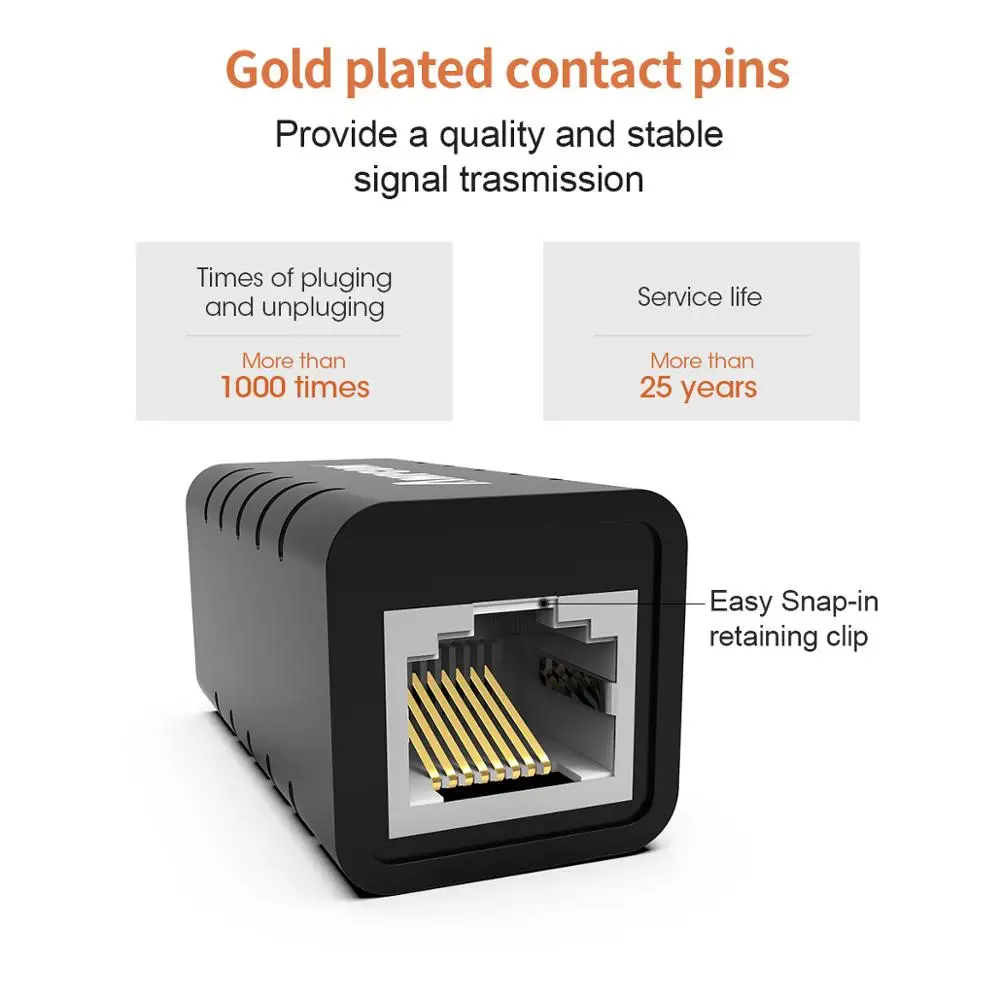 -Este acoplador RJ45 puede soportar una velocidad superrápida de hasta 10 gigabite cuando se conecta a cables de red CAT7 CAT6 CAT5e CAT5.