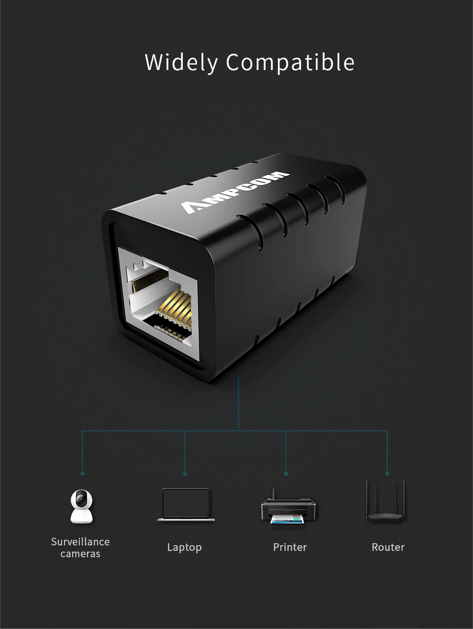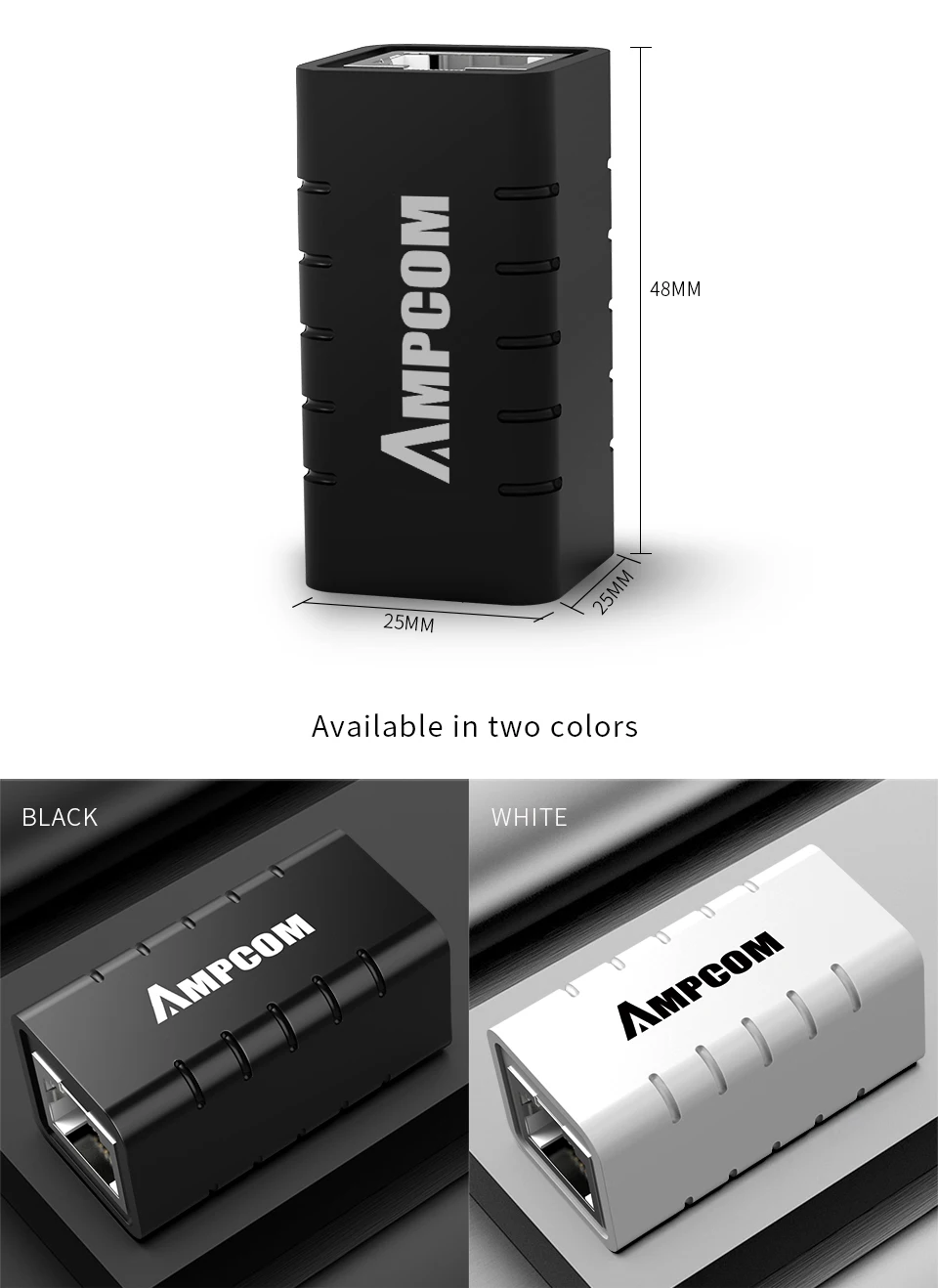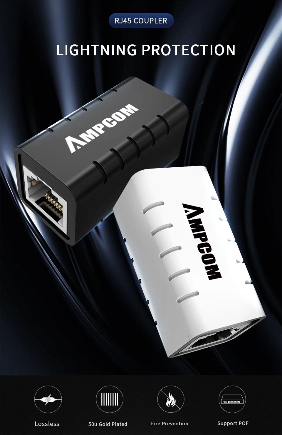 Comprar AMPCOM-acoplador de protección contra rayos RJ45, adaptador extensor de Cable Ethernet Cat7 Cat6 Cat5e, conector LAN hembra a hembra