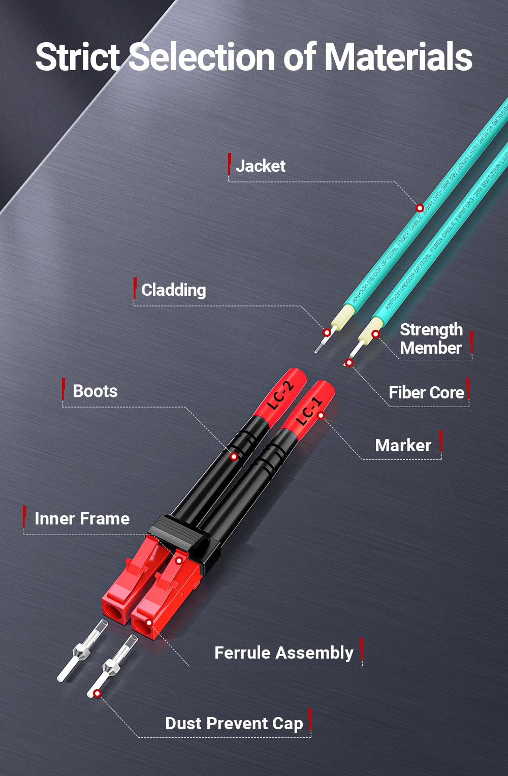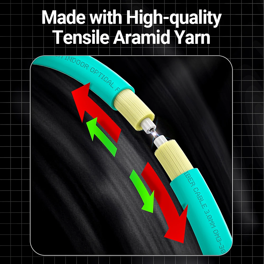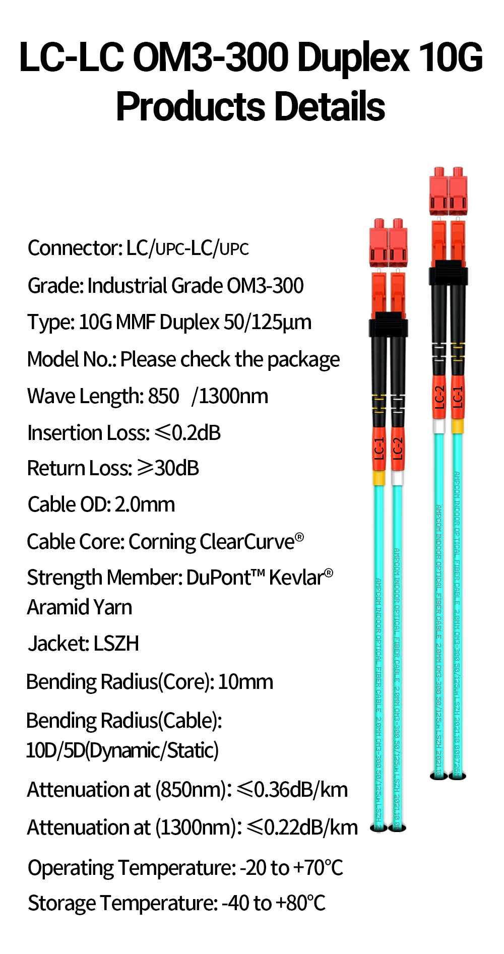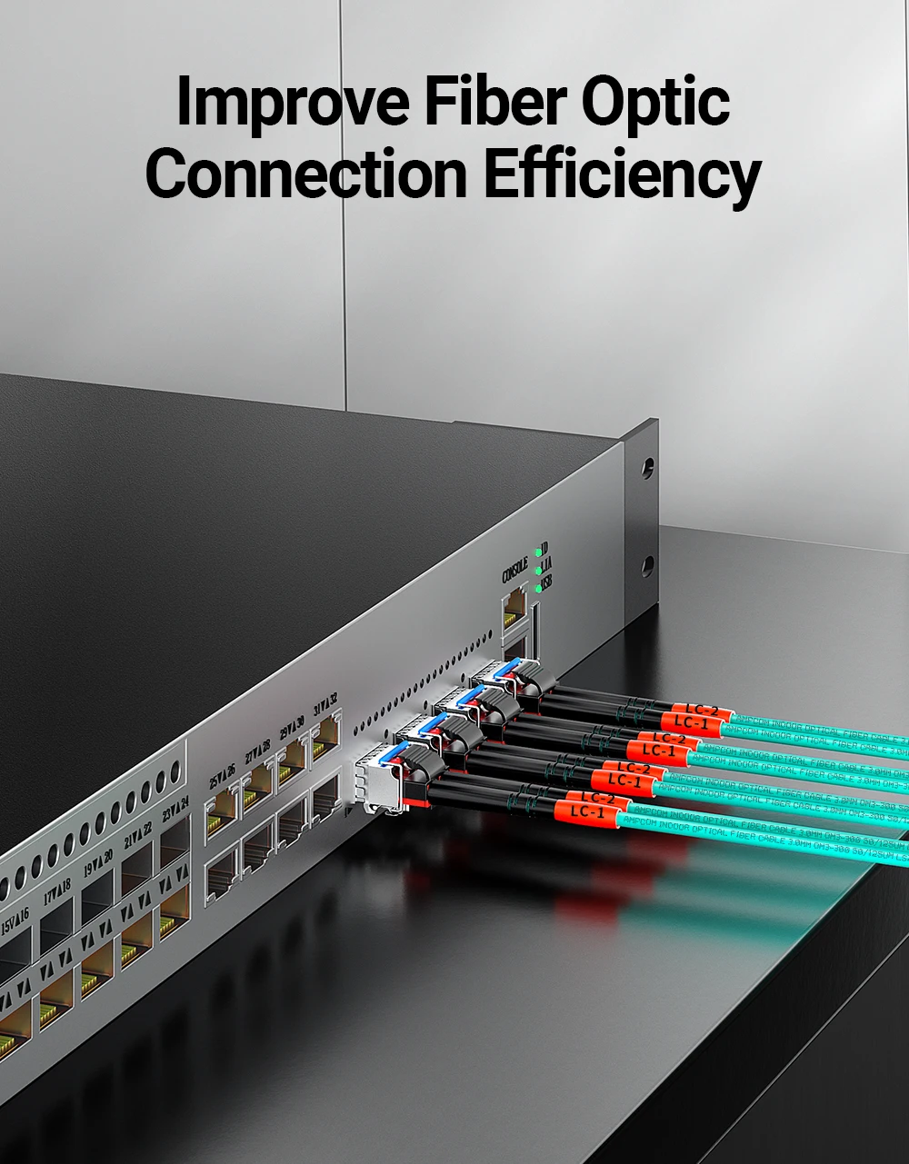El cable de fibra óptica multimodo insensible a la flexión de 50/125μm OM3 tiene menos atenuación cuando se dobla o tuerce en comparación con los cables de fibra óptica tradicionales y esto hará que la instalación y el mantenimiento de los cables de fibra óptica sea más eficiente. También puede ahorrar más espacio para su cableado de alta densidad en centros de datos, redes empresariales, salas de telecomunicaciones, granjas de servidores, redes de almacenamiento en la nube y cualquier lugar donde se necesiten cables de conexión de fibra.